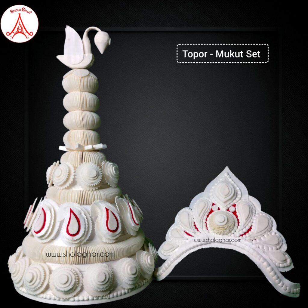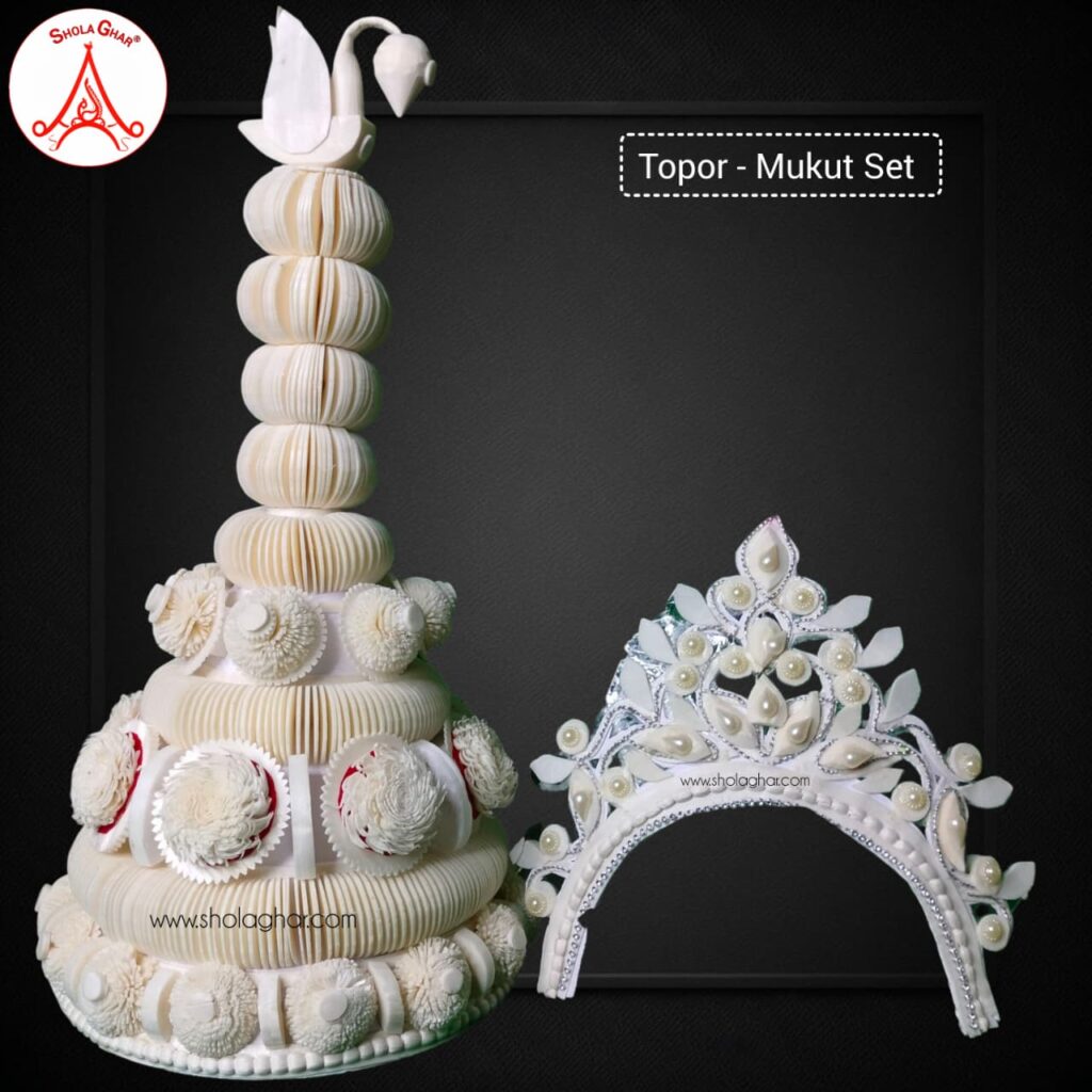 আমরা টোপর আর মুকুটের সেট নিয়েছিলাম সোলা ঘর থেকে, সাথে একটা মুকুট পেয়েছিলাম ১ টাকায়(অফার চলছিল)। সোলার কাজ, কোয়ালিটি খুব ভালো। আমাদের ভীষণ পছন্দ হয়েছে।