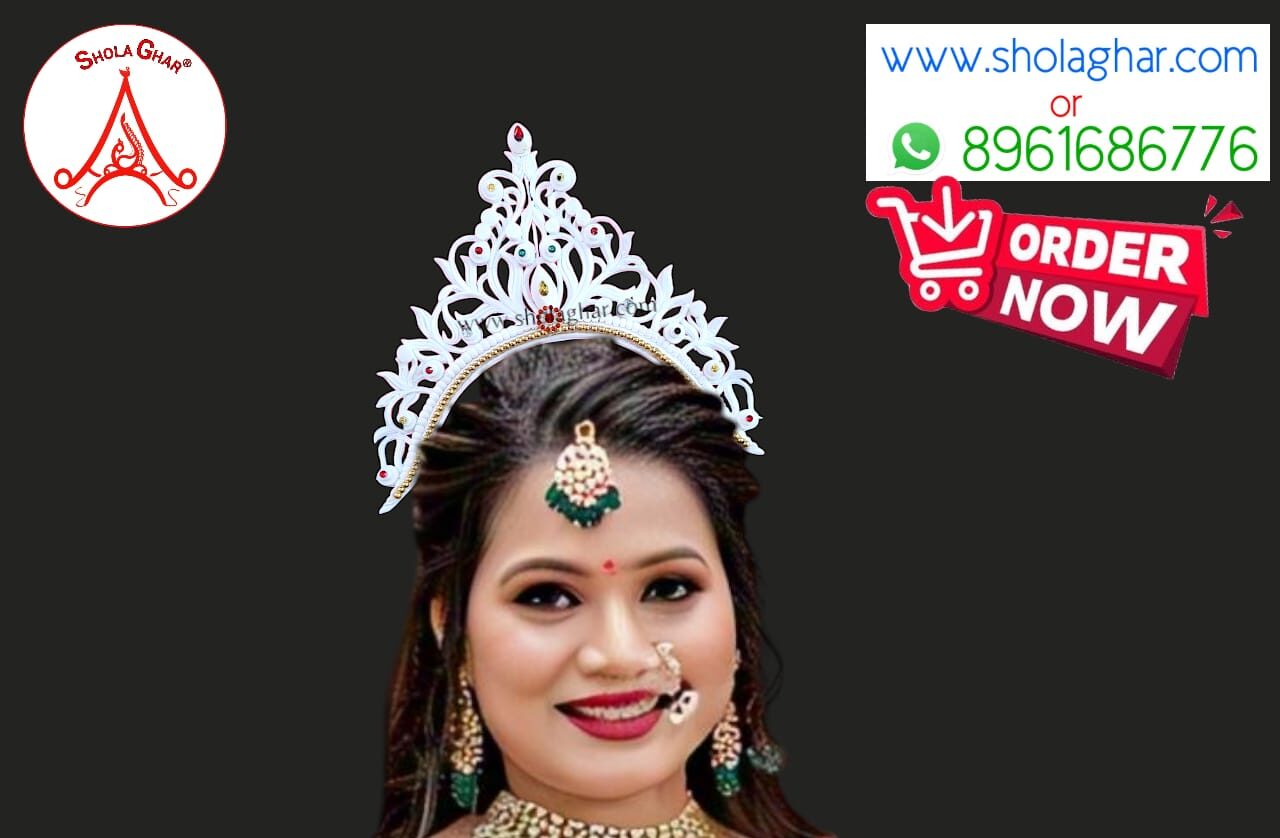 Make your wedding day special with shola ghar beautiful Bengali Bridal Mukut. This crown is a part of every Bengali bride’s traditional look. It is worn during the wedding ceremony and adds charm, grace, and cultural beauty to the bride.