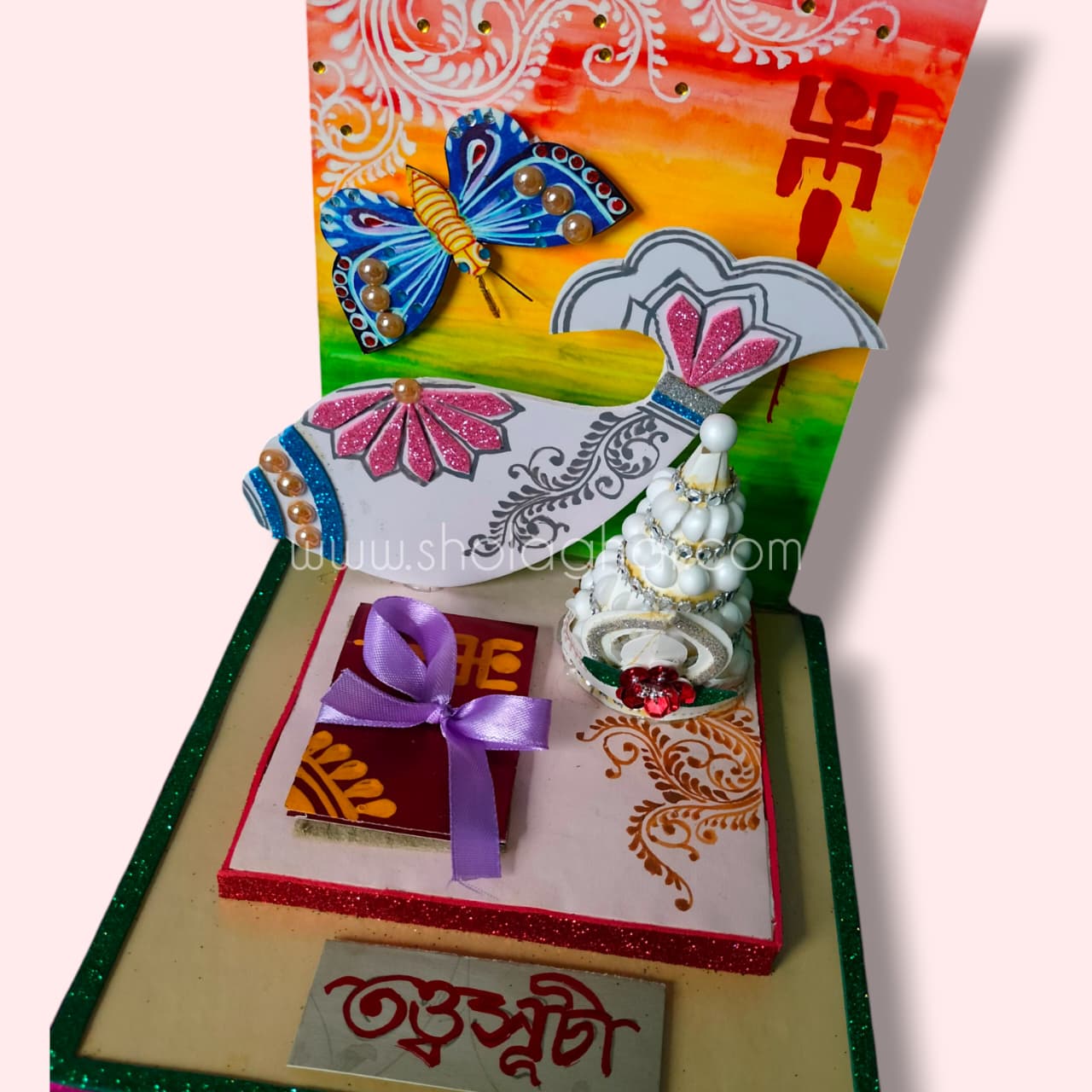At Shola Ghar, we understand how important these moments are. That’s why we offer designer Tattwasuchi options that are elegant, artistic, and made with care. Each Tattwasuchi is crafted with fine materials and unique designs that reflect the beauty of Bengali culture. Whether you prefer a traditional style or something modern and creative, we have many options to match your taste.