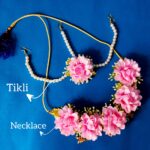 Haldi jewellery is a beautiful blend of tradition, nature, and elegance, specially designed for the vibrant Haldi ceremony in Indian weddings. Unlike heavy gold or diamond ornaments, Haldi jewellery is crafted from fresh or artificial flowers, beads, shells, and pearls, reflecting the joyous and colorful spirit of the occasion. The pieces usually include floral necklaces, earrings, maang tikka, haathphool, anklets, and bangles, all coordinated in bright hues of yellow, white, pink, or green to complement the bride’s Haldi outfit.