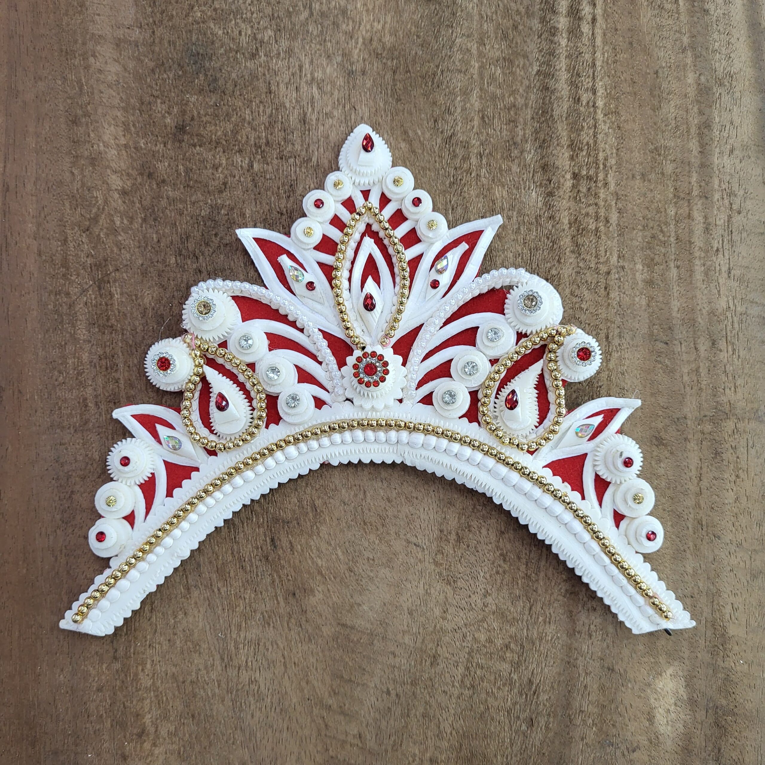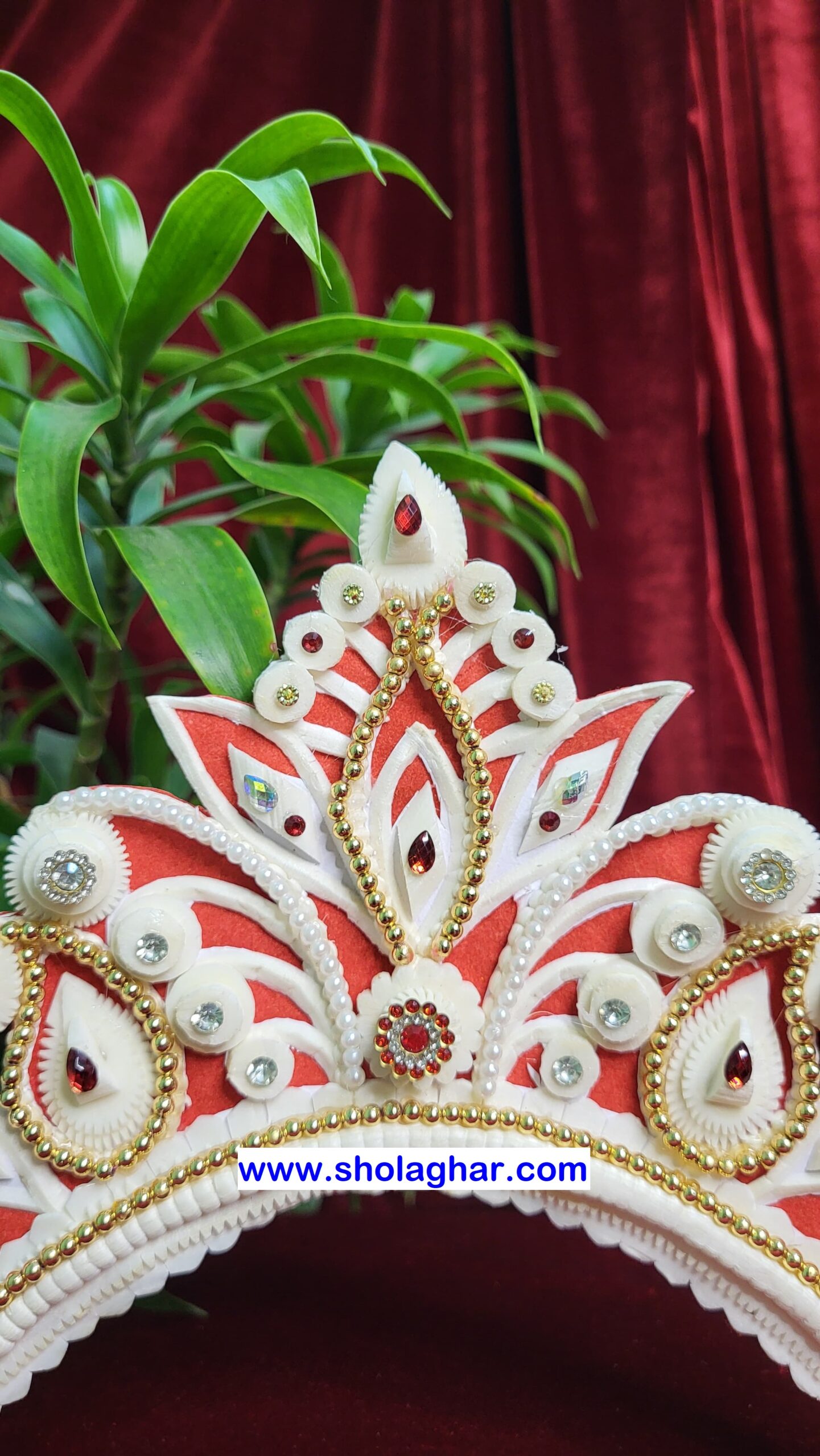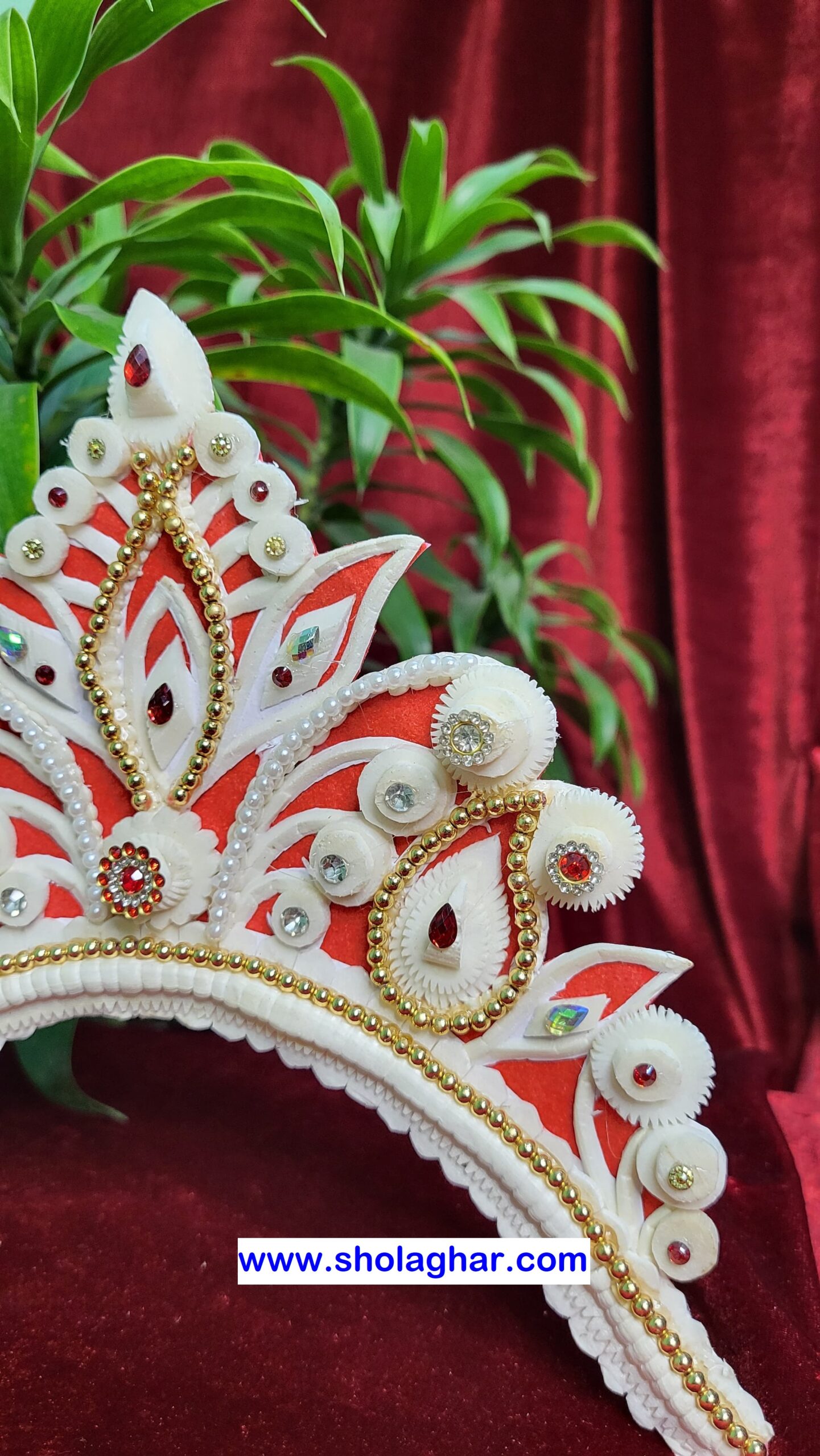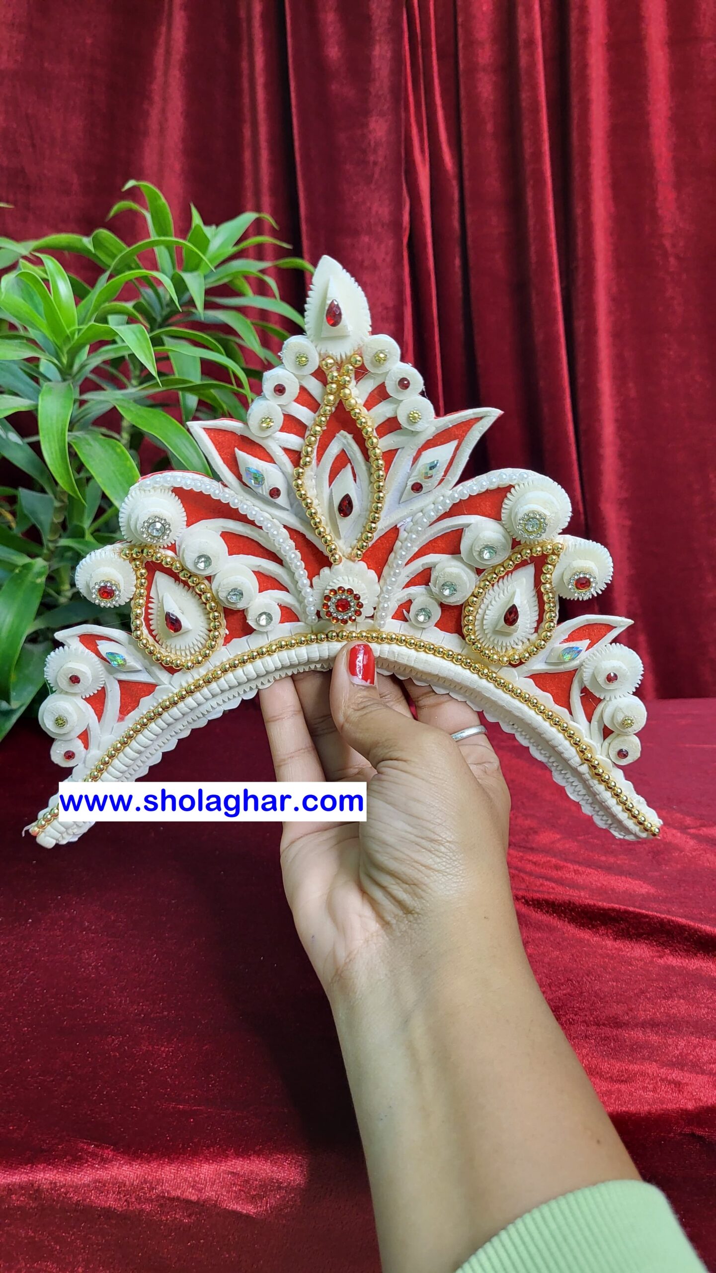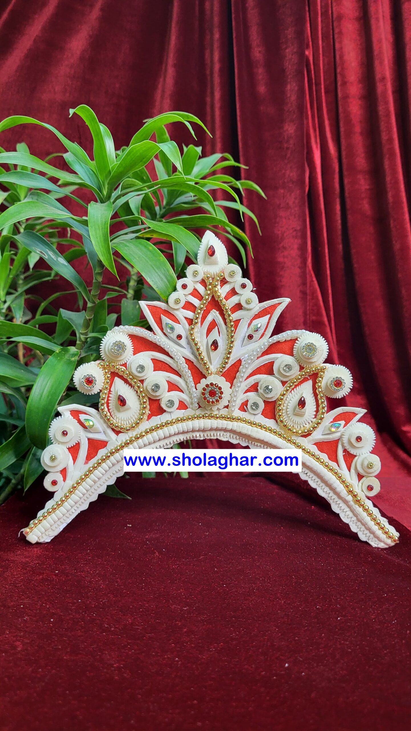 Size: Size of Shola Ghar’s Mukut is free to adjust all head and it has hooks in backside for threading.