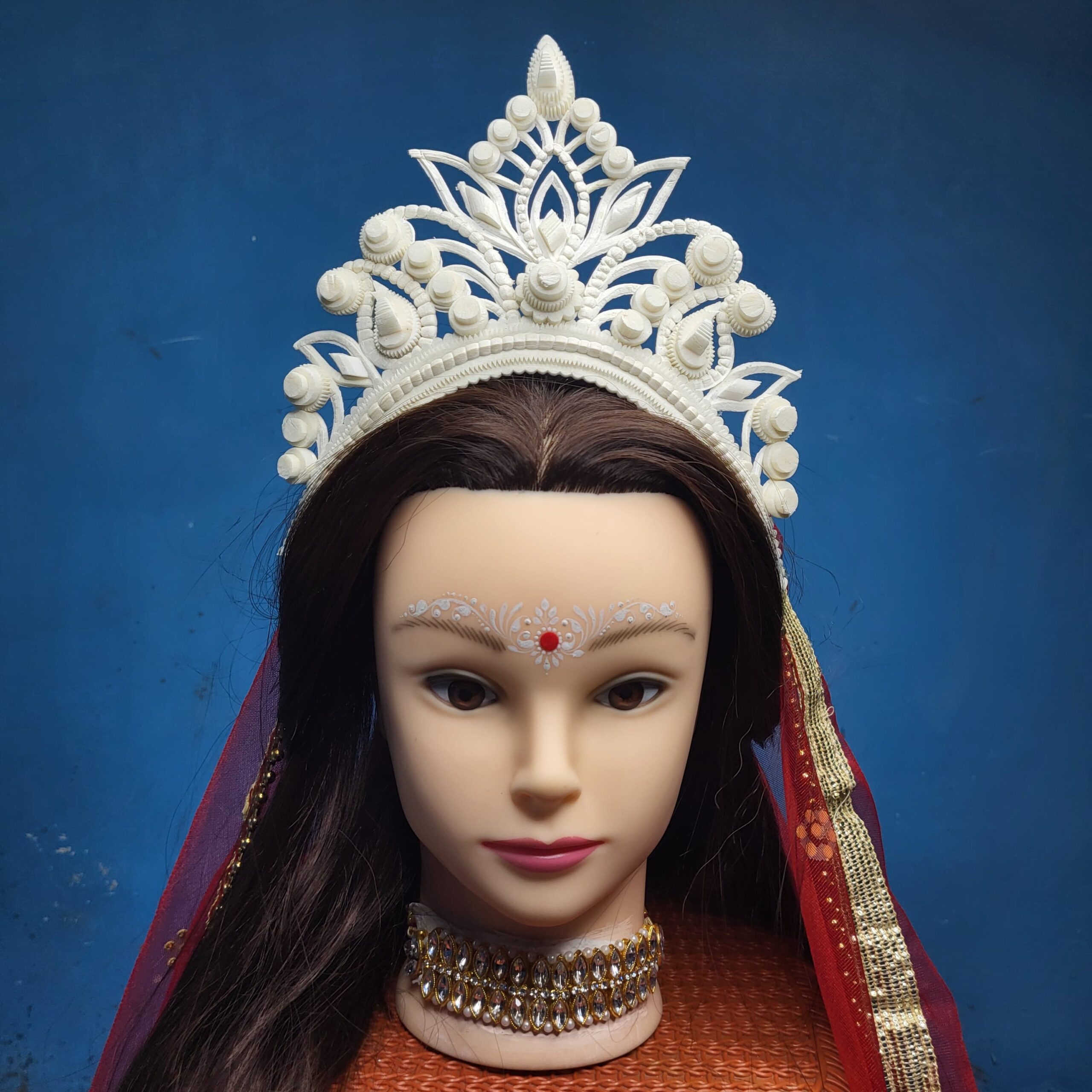 ‘Bridal Mukut’ is made up of Pure organic product called Shola, which is a soft quality and skin friendly material. Bengali brides wear this shola mukut to maintain their tradition, royalty, beautification and bridal rituals.