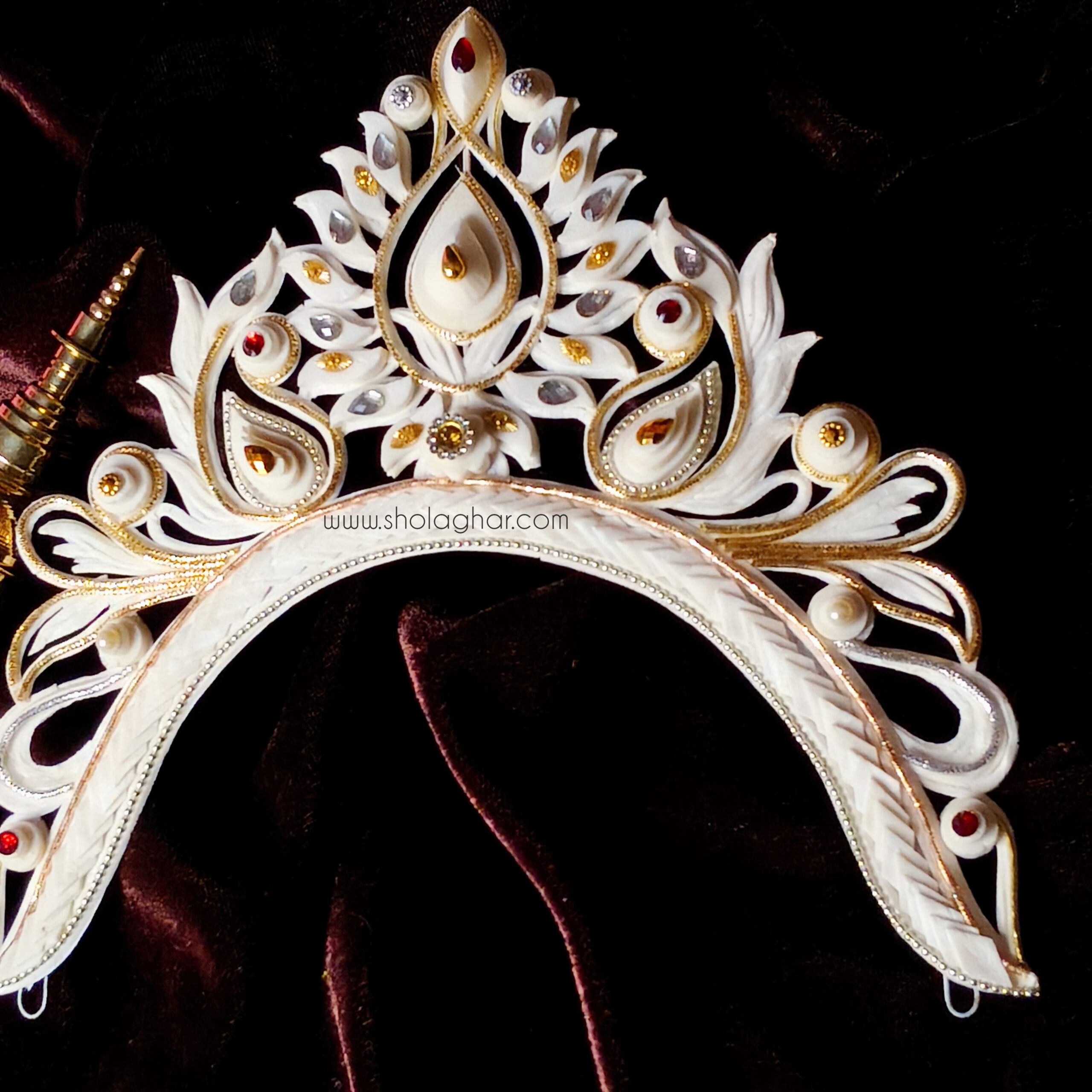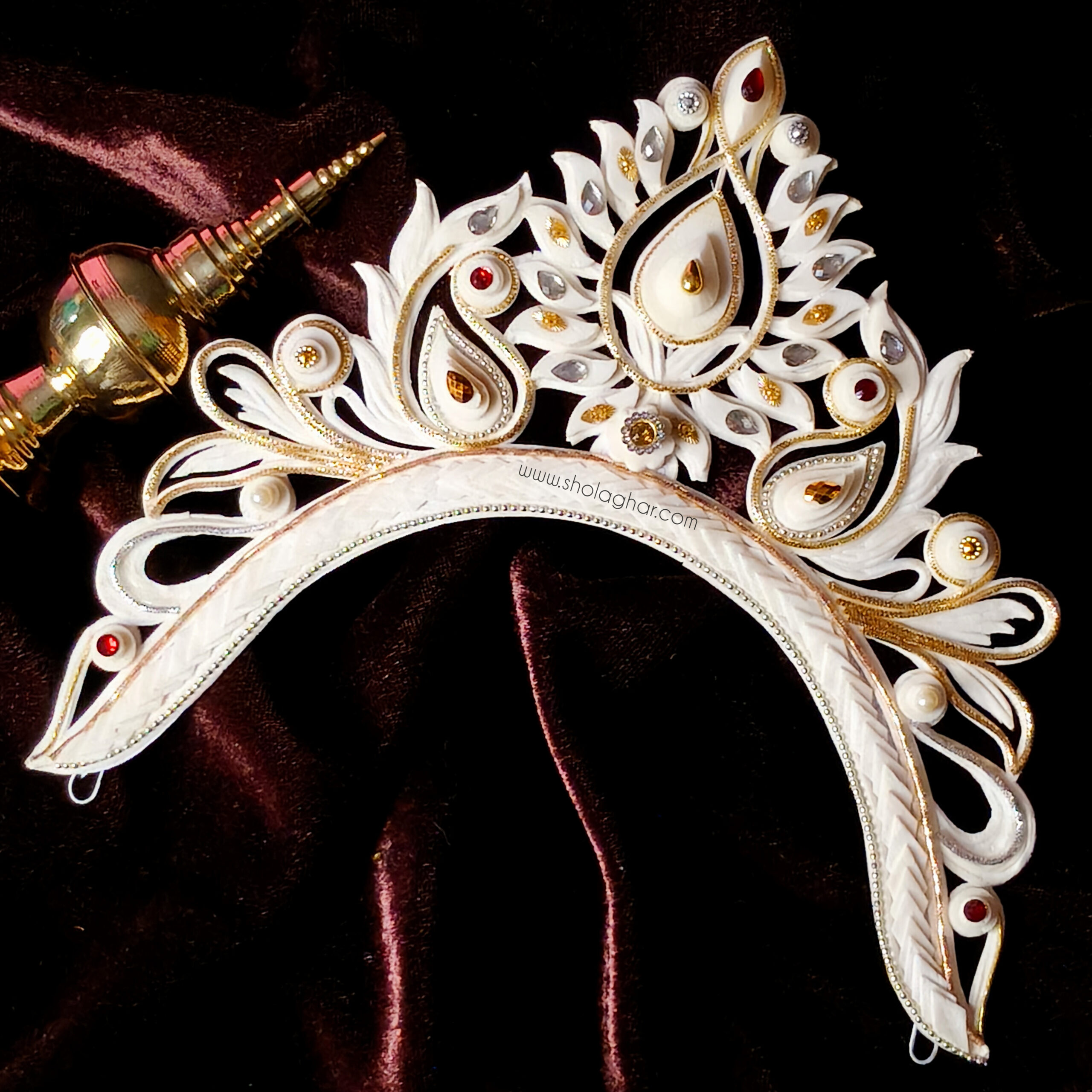 Size: Size of Shola Ghar’s Mukut is free to adjust all head and it has hooks in backside for threading.