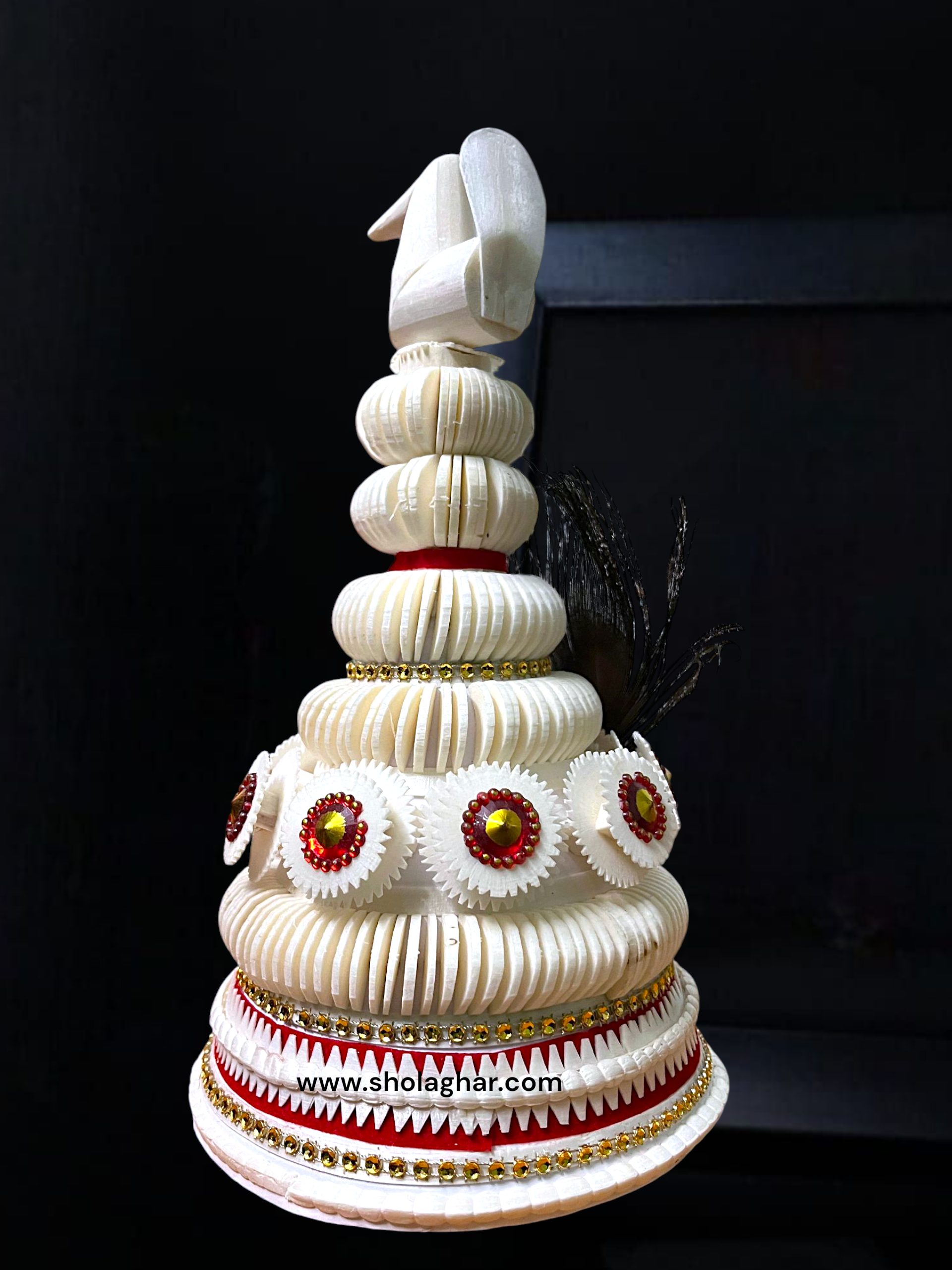 In Bengali tradition, the Topor is a special headgear worn during important rituals. Our baby-sized Topor is designed for little ones to wear during Annaprashan. It is soft, lightweight, and very comfortable for babies to wear. The topor is handcrafted from shola, a natural and eco-friendly material, and decorated with traditional designs.