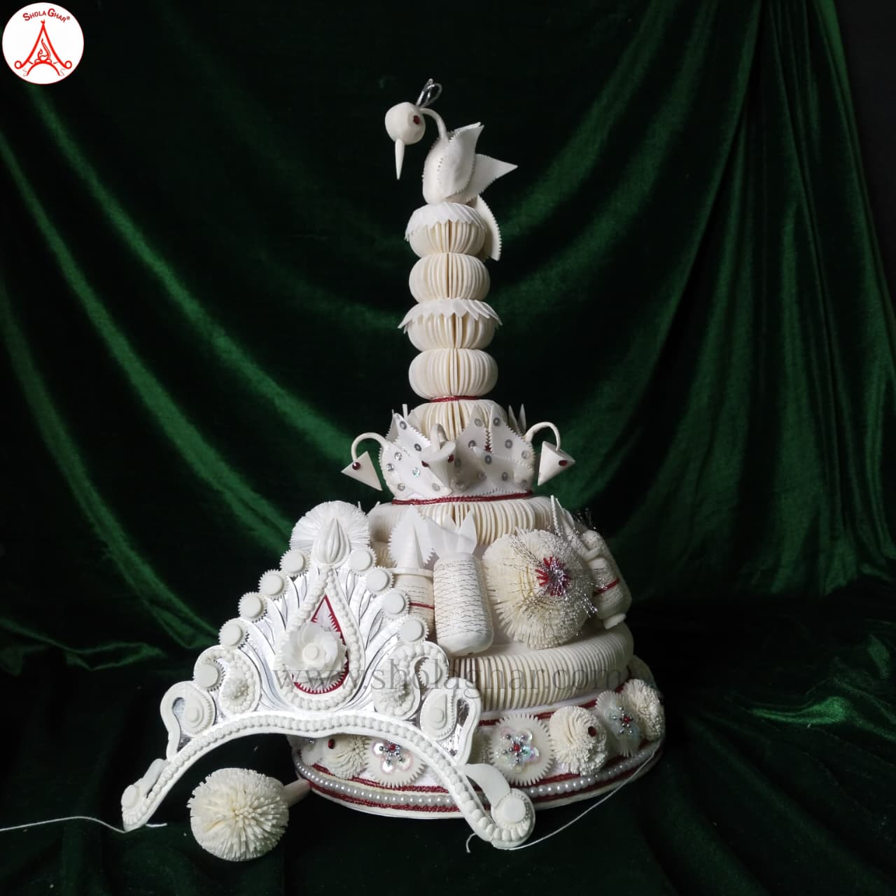 Shola ghar Celebrate the traditions of a Bengali wedding with this beautifully handcrafted Topor-Mukut Set, an essential element of Bengali matrimonial rituals. Rooted in rich cultural heritage, this elegant set is worn by both the bride and groom during the wedding ceremony, divine blessings, and marital bliss.