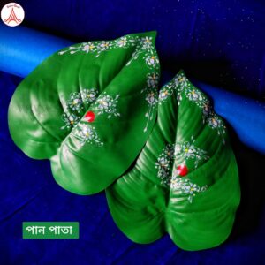 We bring you a beautiful Panpata, for this important ritual. It looks fresh and elegant and lasts much longer than real leaves. Our skilled artists hand-paint each Panpata with colorful kolka designs that reflect Bengali culture and art. These designs make the Panpata look bright, festive, and perfect for the wedding day.