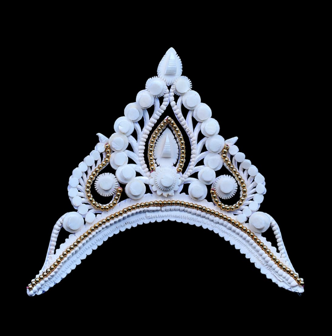 ‘Bridal Mukut’ is made up of Pure organic product called Shola, which is a soft quality and skin friendly material. Bengali brides wear this shola mukut to maintain their tradition, royalty, beautification and bridal rituals.