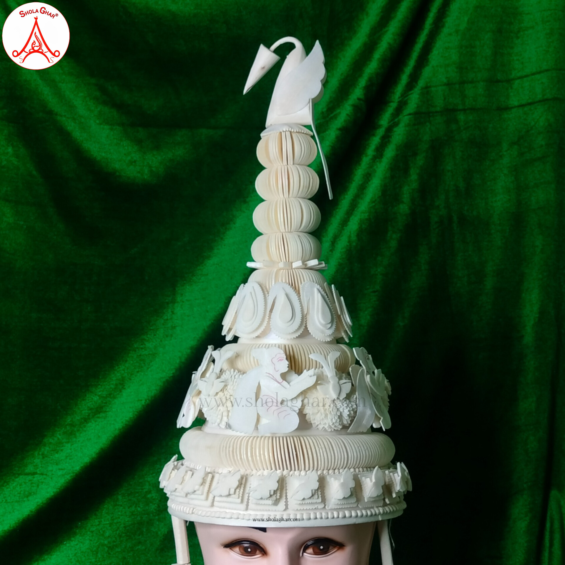 Shola ghar Celebrate the traditions of a Bengali wedding with this beautifully handcrafted Topor-Mukut Set, an essential element of Bengali matrimonial rituals. Rooted in rich cultural heritage, this elegant set is worn by both the bride and groom during the wedding ceremony, divine blessings, and marital bliss.