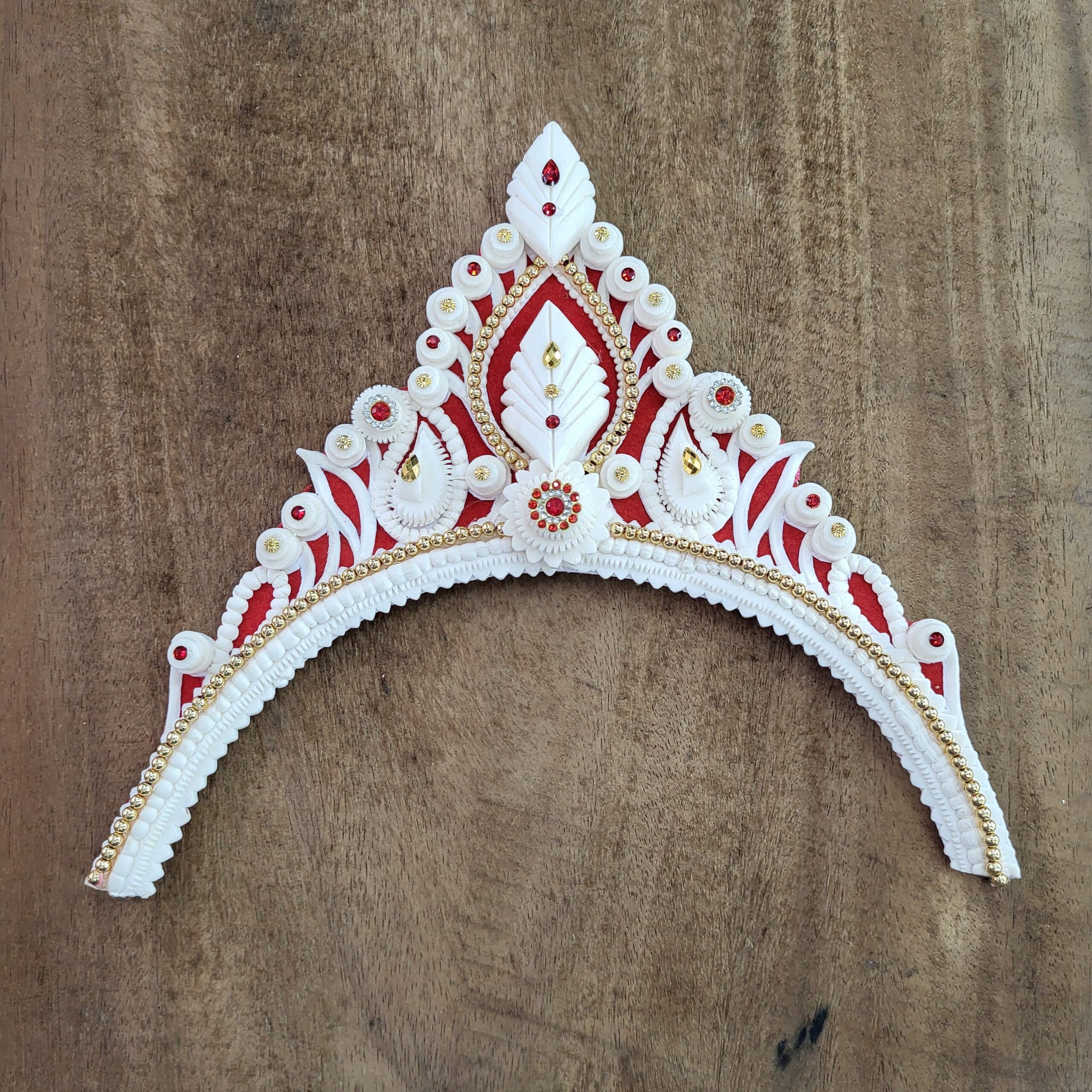 ‘Bridal Mukut’ is made up of Pure organic product called Shola, which is a soft quality and skin friendly material. Bengali brides wear this shola mukut to maintain their tradition, royalty, beautification and bridal rituals.