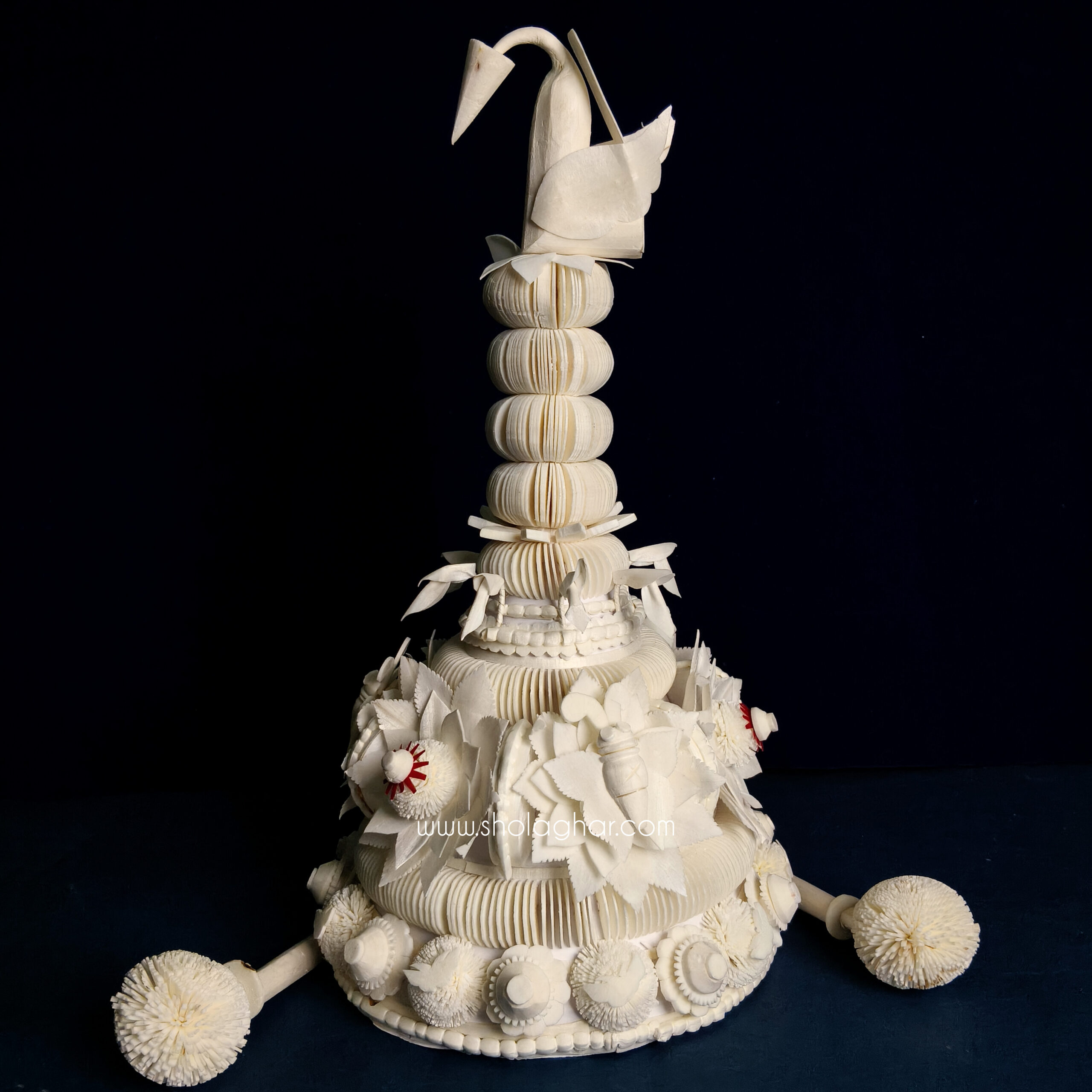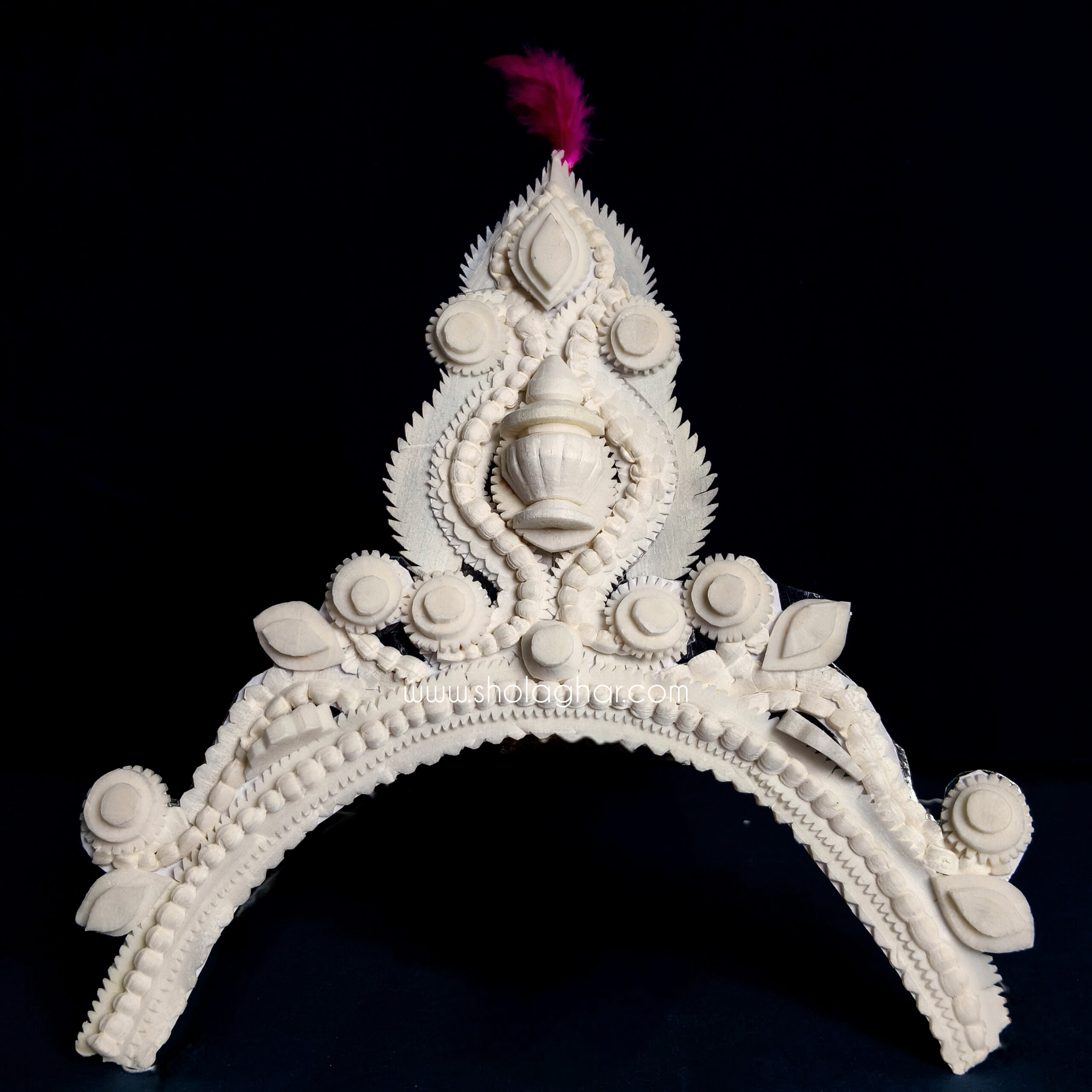 Shola ghar Celebrate the traditions of a Bengali wedding with this beautifully handcrafted Topor-Mukut Set, an essential element of Bengali matrimonial rituals. Rooted in rich cultural heritage, this elegant set is worn by both the bride and groom during the wedding ceremony, divine blessings, and marital bliss.
