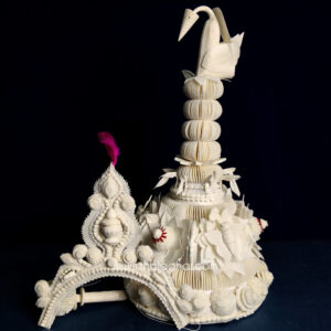 The Topor is a traditional conical headgear worn by the groom, while the Mukut is the ornate crown worn by the bride. Both are made using lightweight shola (Indian cork) and embellished with delicate, intricate patterns that reflect Bengal’s artisanal craftsmanship.