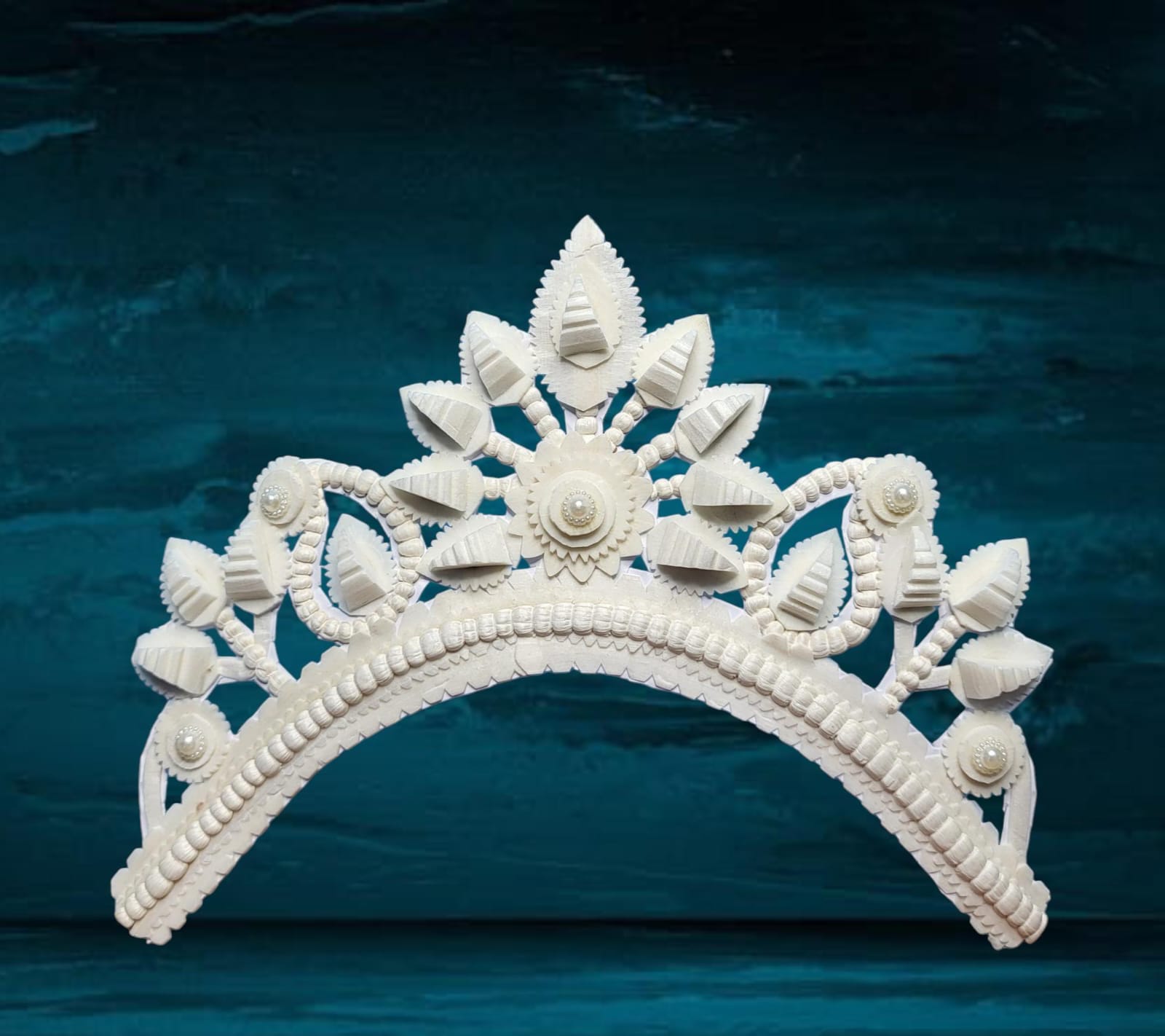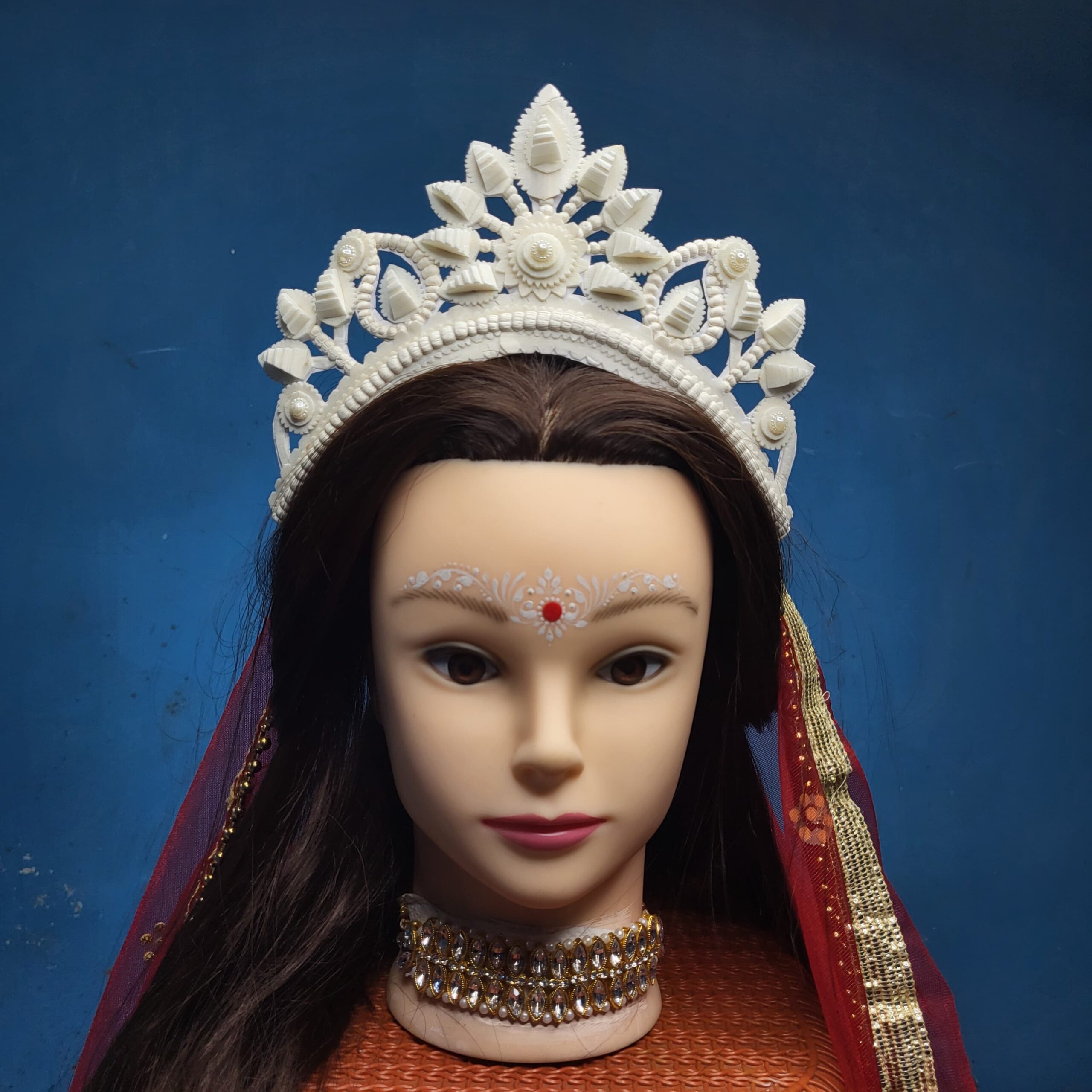 ‘Bridal Mukut’ is made up of Pure organic product called Shola, which is a soft quality and skin friendly material. Bengali brides wear this shola mukut to maintain their tradition, royalty, beautification and bridal rituals.