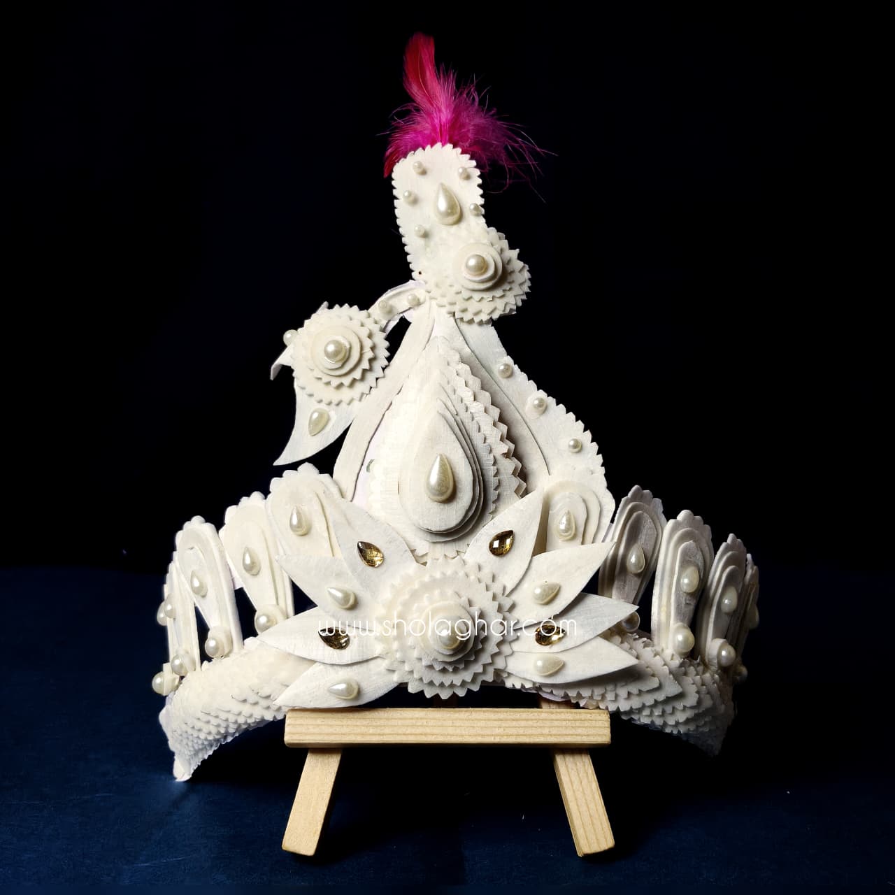 Shola ghar Celebrate the traditions of a Bengali wedding with this beautifully handcrafted Topor-Mukut Set, an essential element of Bengali matrimonial rituals. Rooted in rich cultural heritage, this elegant set is worn by both the bride and groom during the wedding ceremony, divine blessings, and marital bliss.