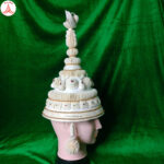 The Topor is a traditional conical headgear worn by the groom. Topor are made using lightweight shola (Indian cork) and embellished with delicate, intricate patterns that reflect Bengal’s artisanal craftsmanship.
