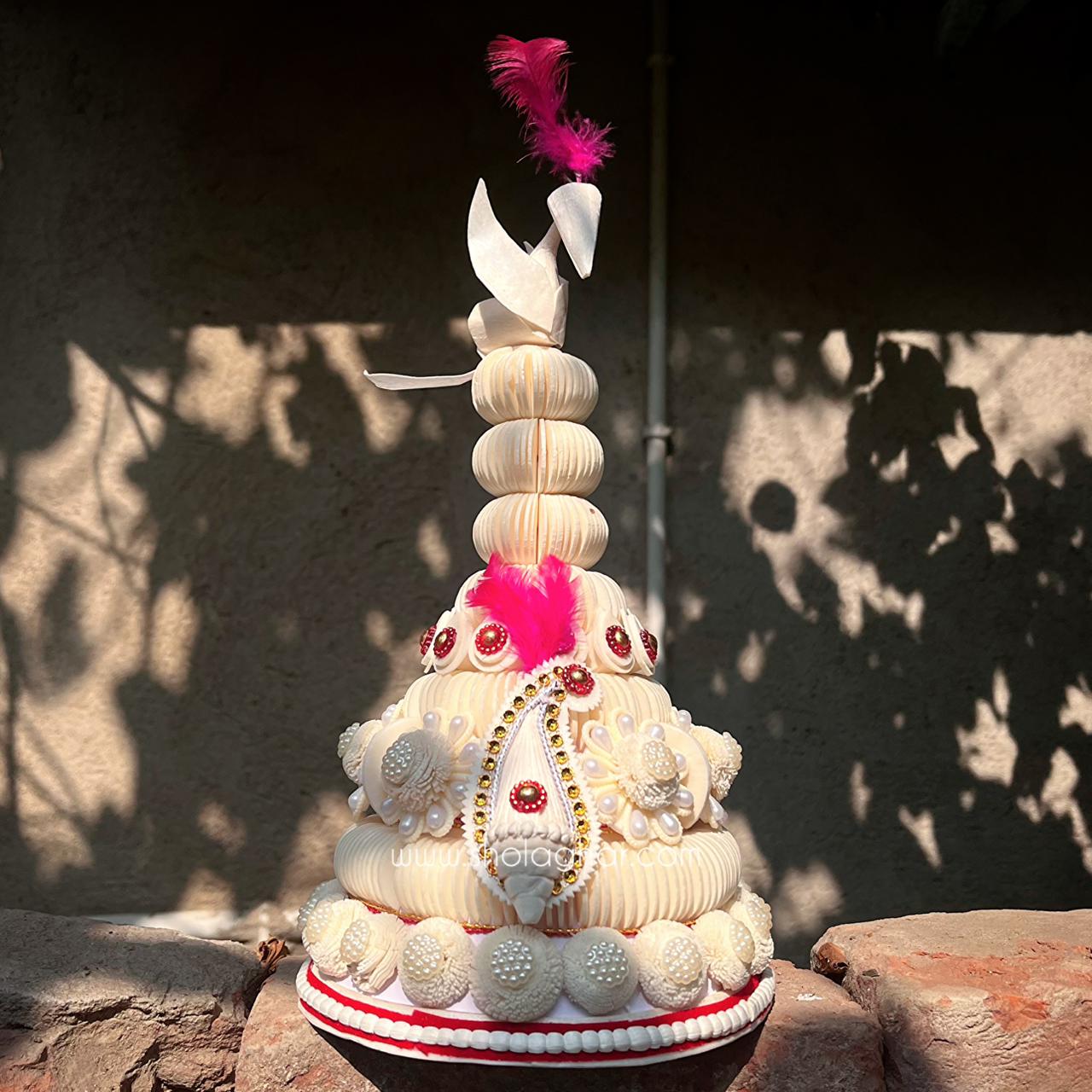 In Bengali tradition, the Topor is a special headgear worn during important rituals. Our baby-sized Topor is designed for little ones to wear during Annaprashan. It is soft, lightweight, and very comfortable for babies to wear. The topor is handcrafted from shola, a natural and eco-friendly material, and decorated with traditional designs.