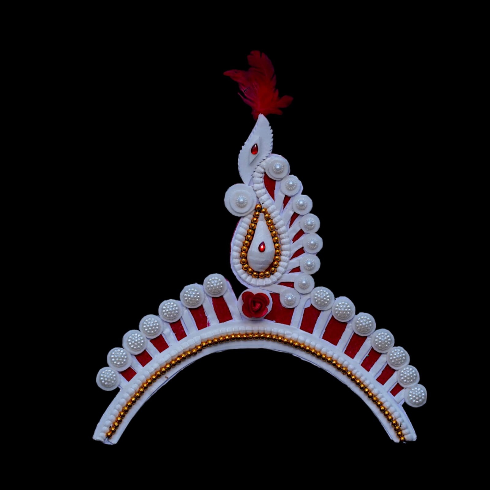 In Box- Mukut, White & Red Feathers, Threads, Double tape