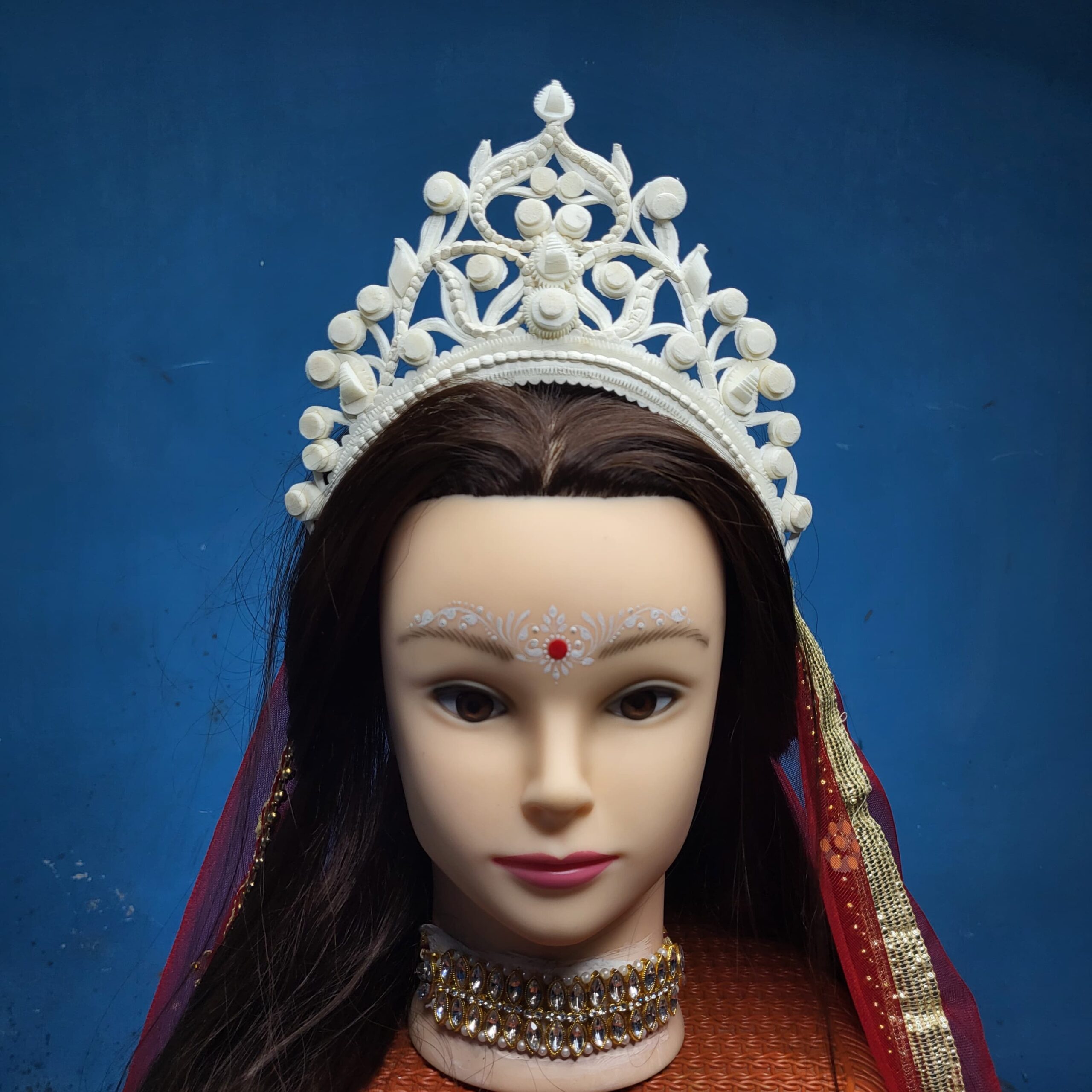 ‘Bridal Mukut’ is made up of Pure organic product called Shola, which is a soft quality and skin friendly material. Bengali brides wear this shola mukut to maintain their tradition, royalty, beautification and bridal rituals.
