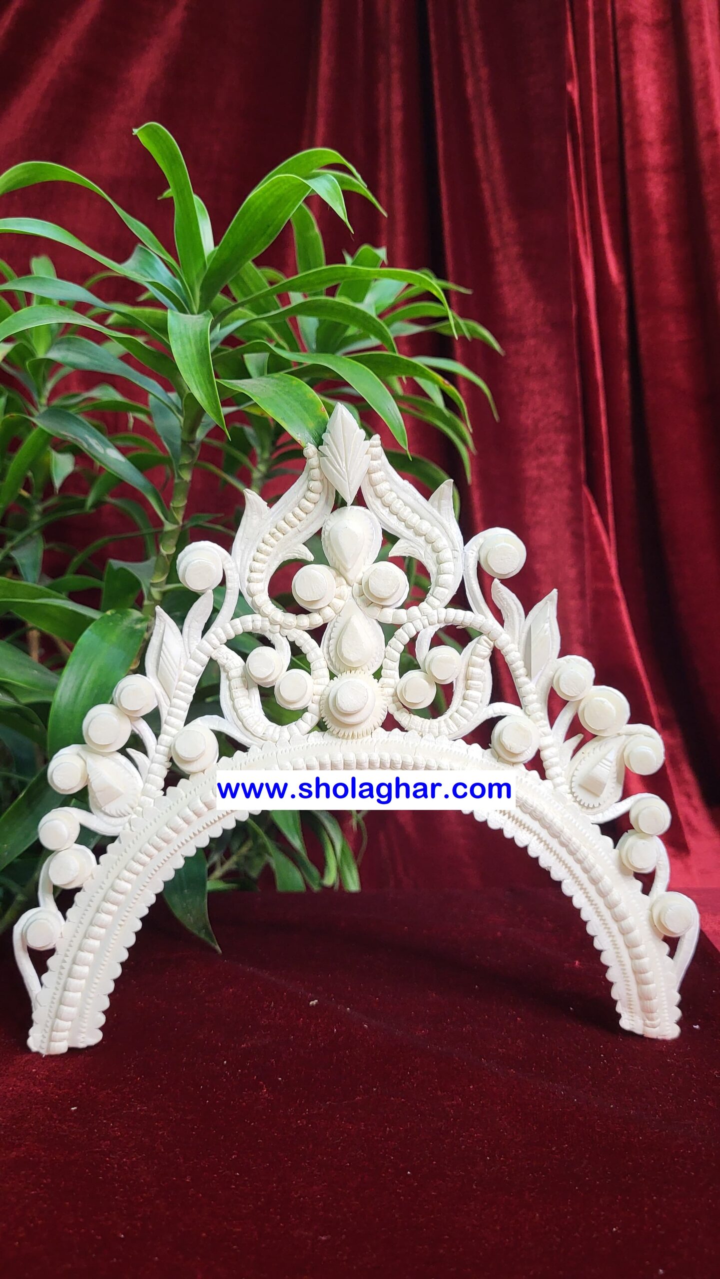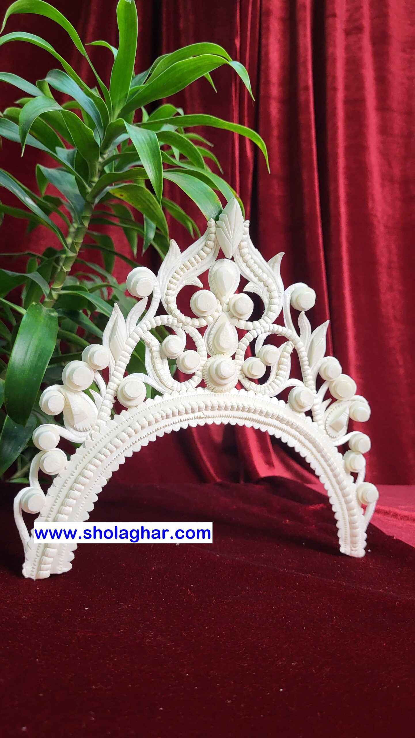 Size: Size of Shola Ghar’s Mukut is free to adjust all head and it has hooks in backside for threading.