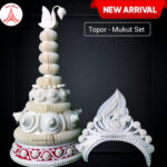 The Topor is a traditional conical headgear worn by the groom, while the Mukut is the ornate crown worn by the bride. Both are made using lightweight shola (Indian cork) and embellished with delicate, intricate patterns that reflect Bengal’s artisanal craftsmanship.