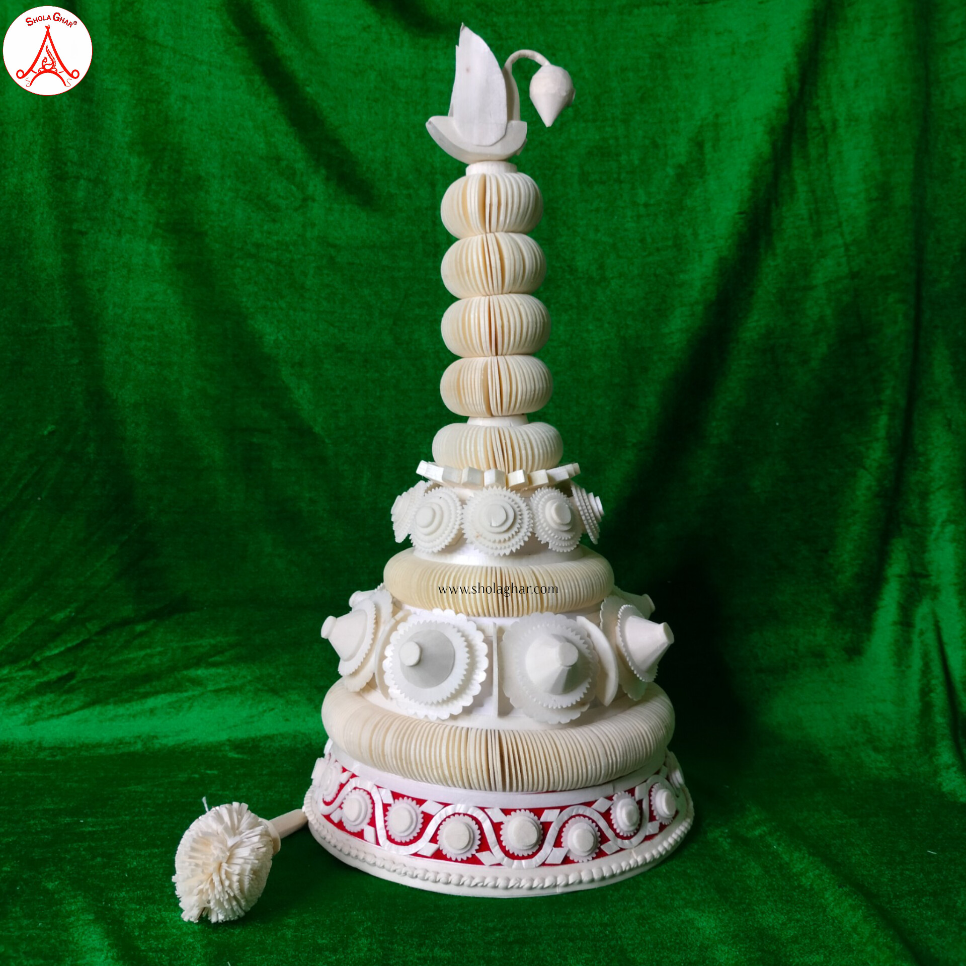 Shola ghar Celebrate the traditions of a Bengali wedding with this beautifully handcrafted Topor-Mukut Set, an essential element of Bengali matrimonial rituals. Rooted in rich cultural heritage, this elegant set is worn by both the bride and groom during the wedding ceremony, divine blessings, and marital bliss.