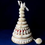 The Topor is a traditional conical headgear worn by the groom. Topor are made using lightweight shola (Indian cork) and embellished with delicate, intricate patterns that reflect Bengal’s artisanal craftsmanship.