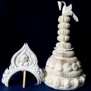 Shola ghar Celebrate the traditions of a Bengali wedding with this beautifully handcrafted Topor-Mukut Set, an essential element of Bengali matrimonial rituals. Rooted in rich cultural heritage, this elegant set is worn by both the bride and groom during the wedding ceremony, divine blessings, and marital bliss.