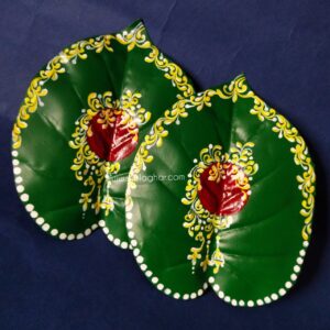 We bring you a beautiful Panpata, for this important ritual. It looks fresh and elegant and lasts much longer than real leaves. Our skilled artists hand-paint each Panpata with colorful kolka designs that reflect Bengali culture and art. These designs make the Panpata look bright, festive, and perfect for the wedding day.
