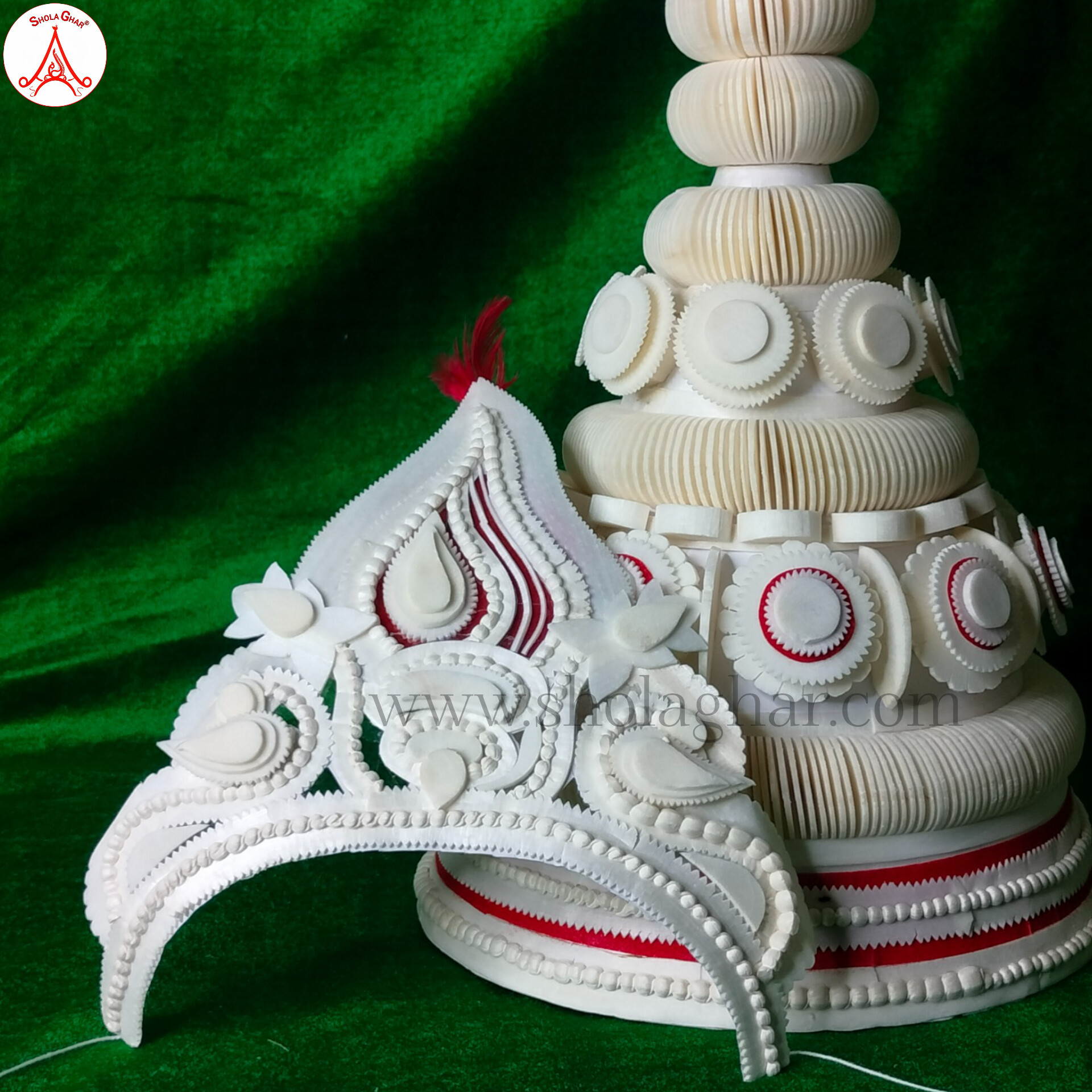 Shola ghar Celebrate the traditions of a Bengali wedding with this beautifully handcrafted Topor-Mukut Set, an essential element of Bengali matrimonial rituals. Rooted in rich cultural heritage, this elegant set is worn by both the bride and groom during the wedding ceremony, divine blessings, and marital bliss.