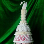 The Topor is a traditional conical headgear worn by the groom, while the Mukut is the ornate crown worn by the bride. Both are made using lightweight shola (Indian cork) and embellished with delicate, intricate patterns that reflect Bengal’s artisanal craftsmanship.
