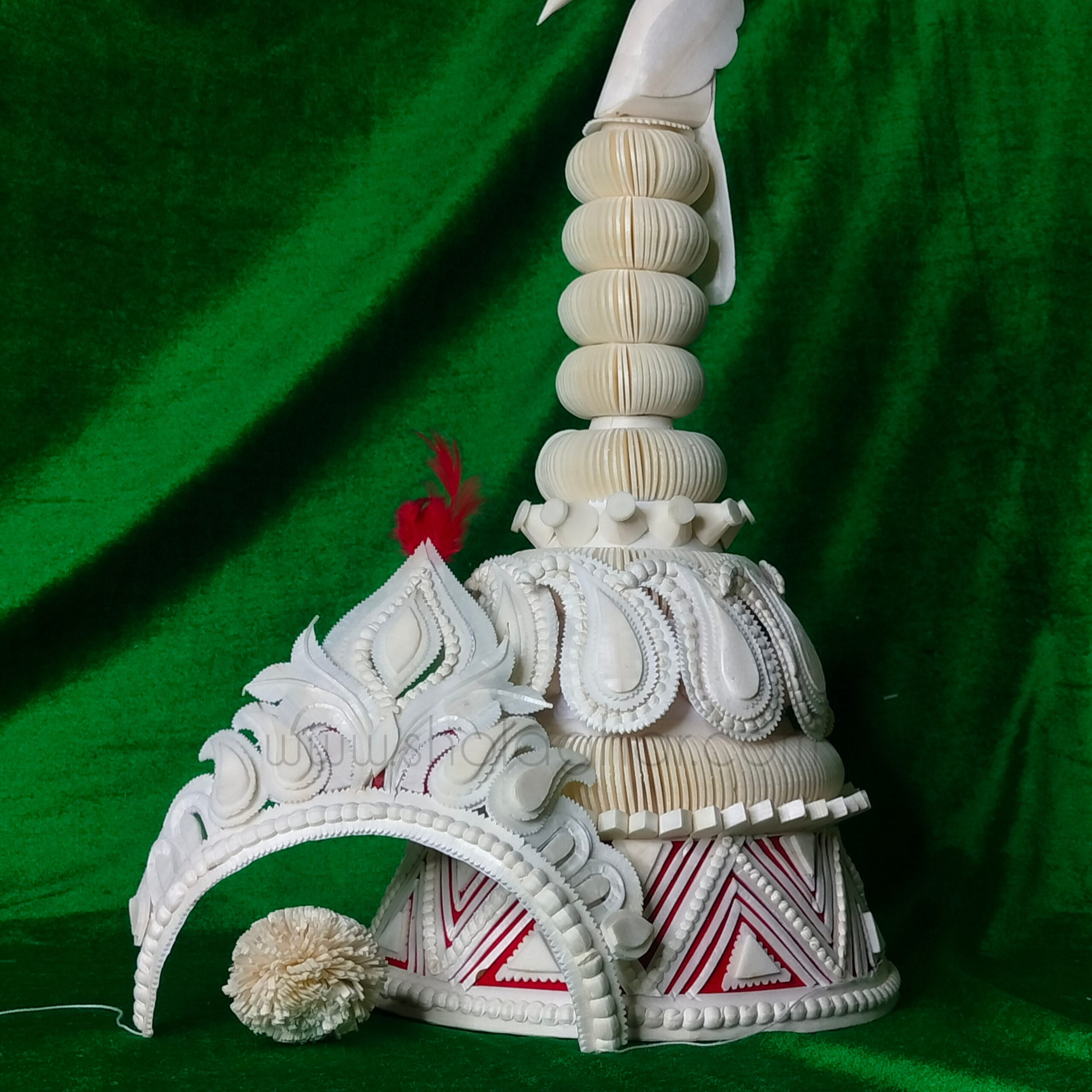 Shola ghar Celebrate the traditions of a Bengali wedding with this beautifully handcrafted Topor-Mukut Set, an essential element of Bengali matrimonial rituals. Rooted in rich cultural heritage, this elegant set is worn by both the bride and groom during the wedding ceremony, divine blessings, and marital bliss.