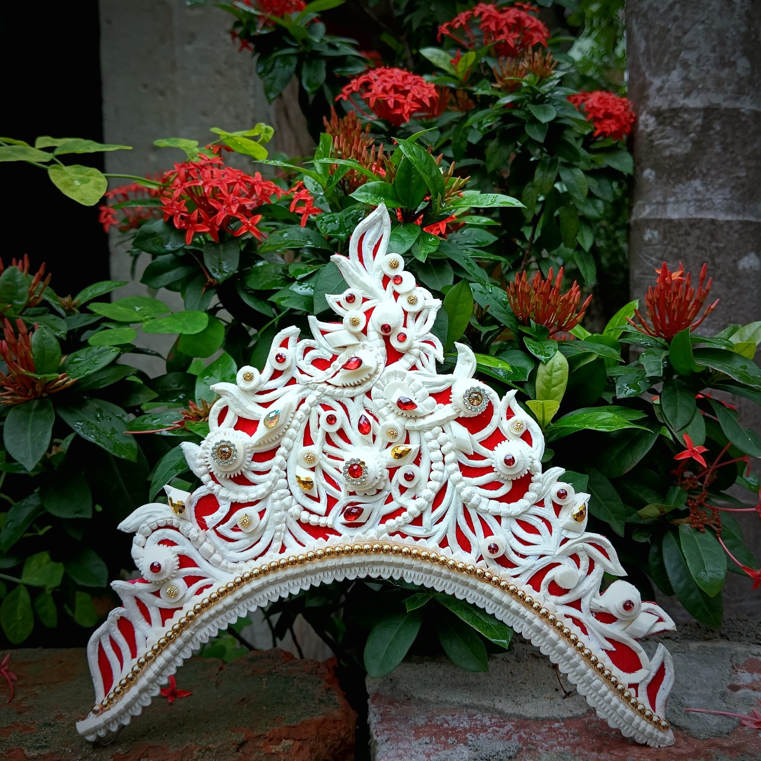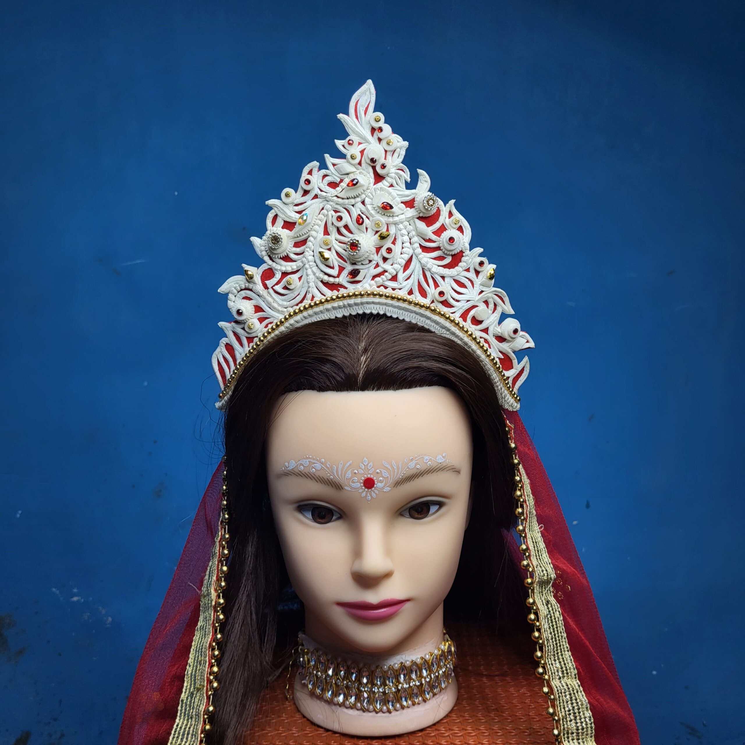 ‘Bridal Mukut’ is made up of Pure organic product called Shola, which is a soft quality and skin friendly material. Bengali brides wear this shola mukut to maintain their tradition, royalty, beautification and bridal rituals.