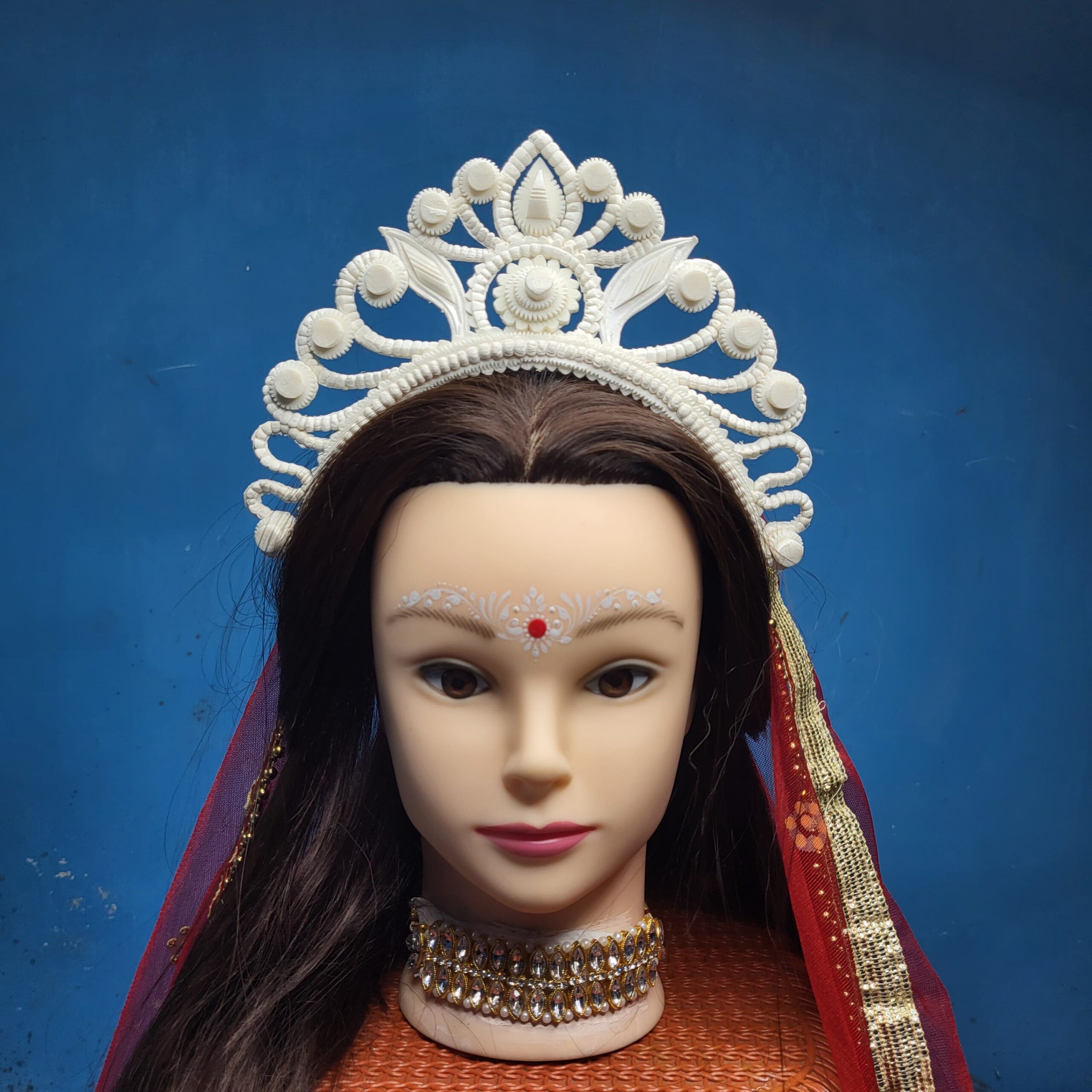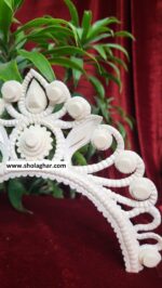 ‘Bridal Mukut’ is made up of Pure organic product called Shola, which is a soft quality and skin friendly material. Bengali brides wear this shola mukut to maintain their tradition, royalty, beautification and bridal rituals.