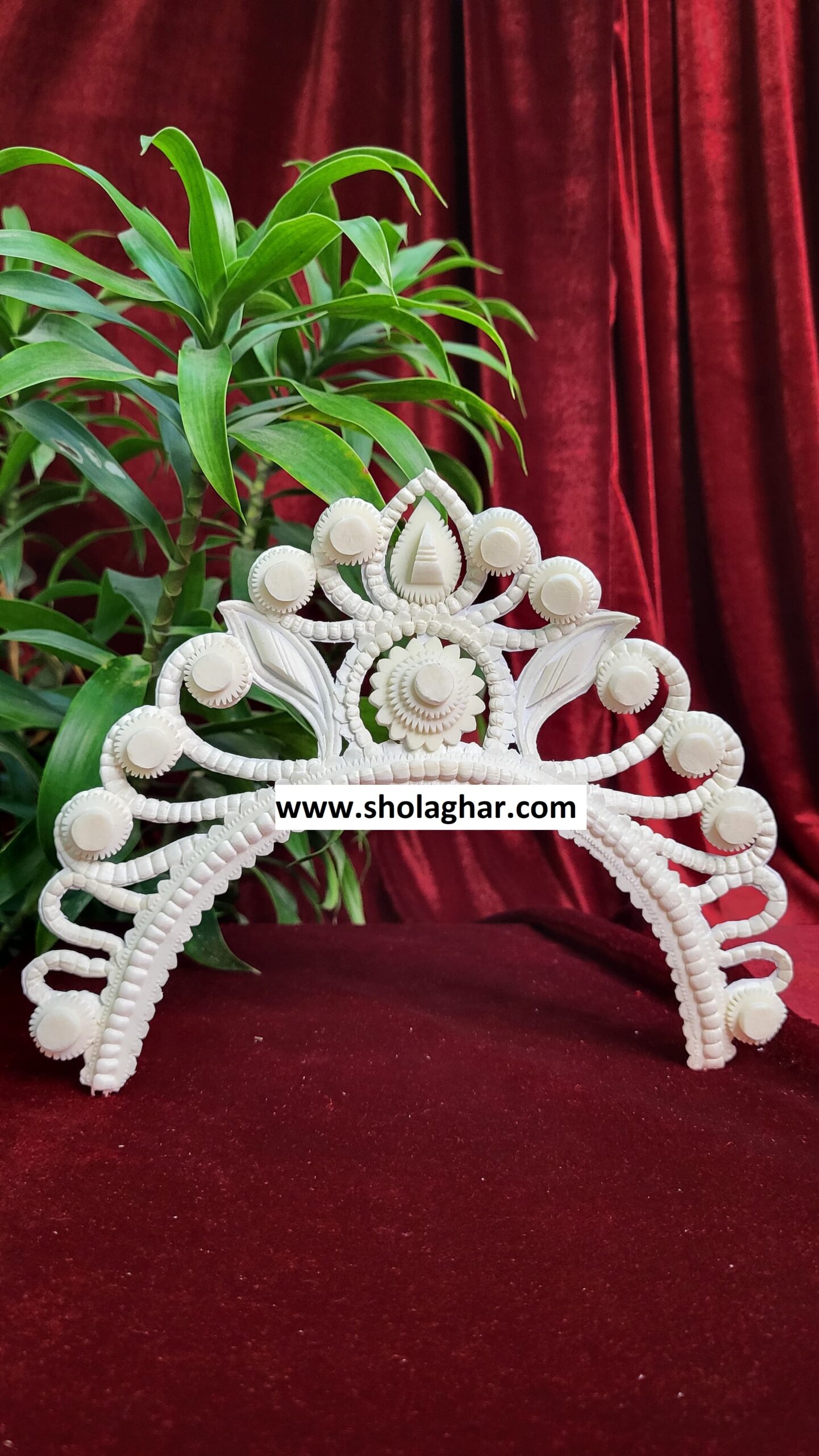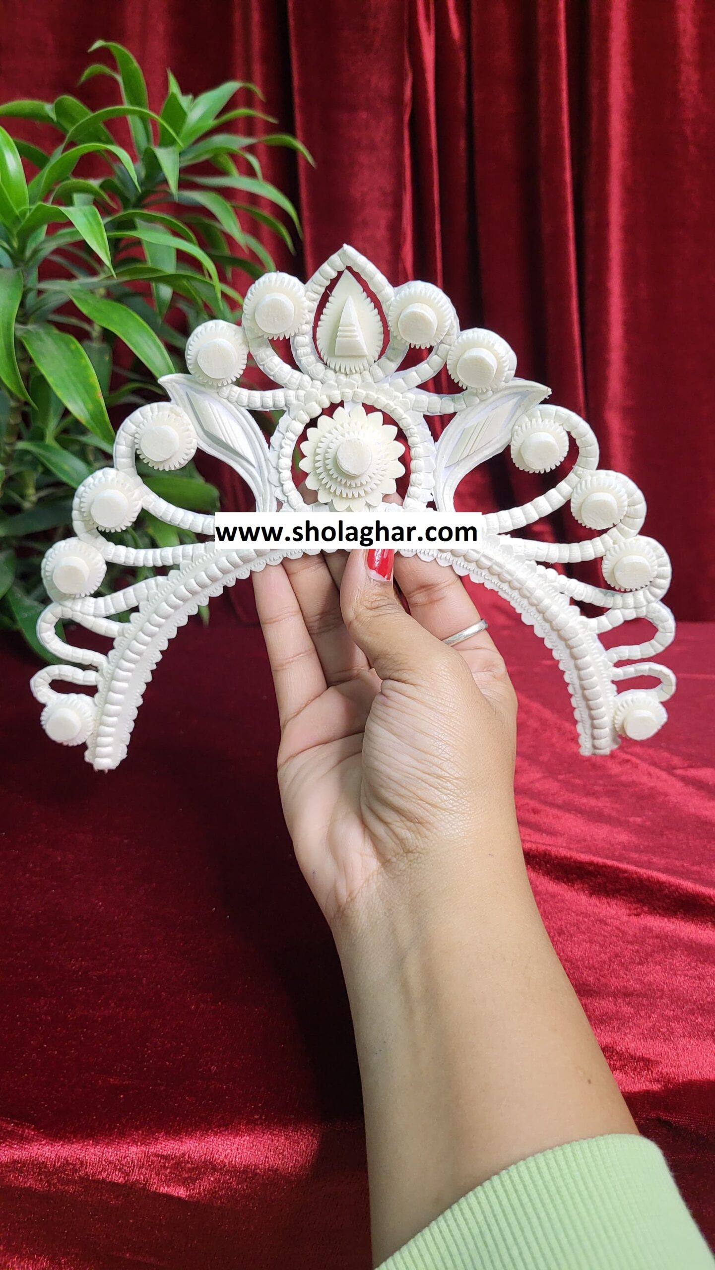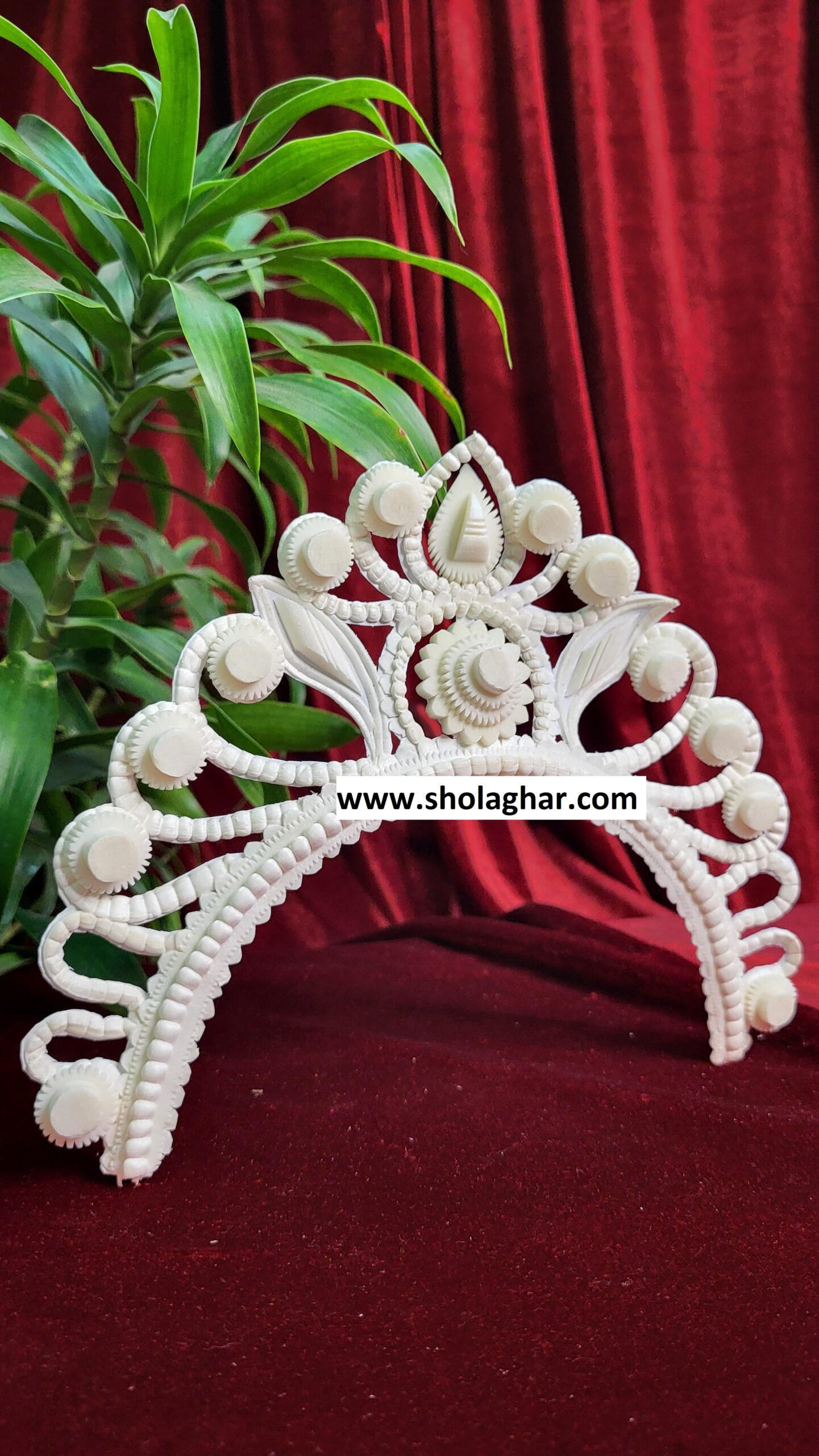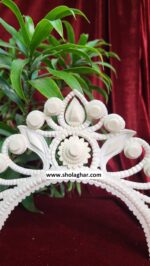 Size: Size of Shola Ghar’s Mukut is free to adjust all head and it has hooks in backside for threading.