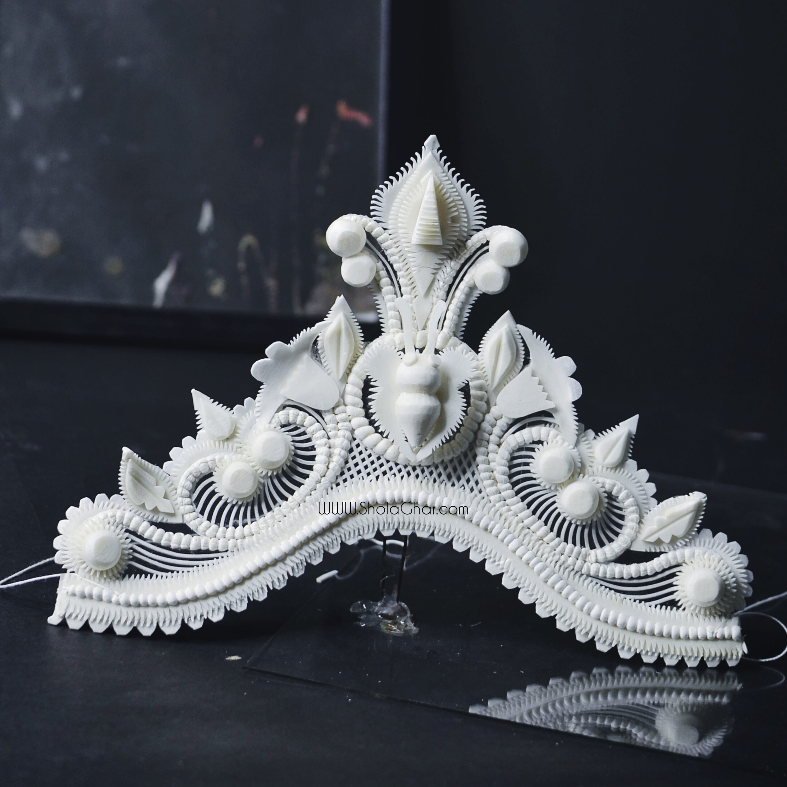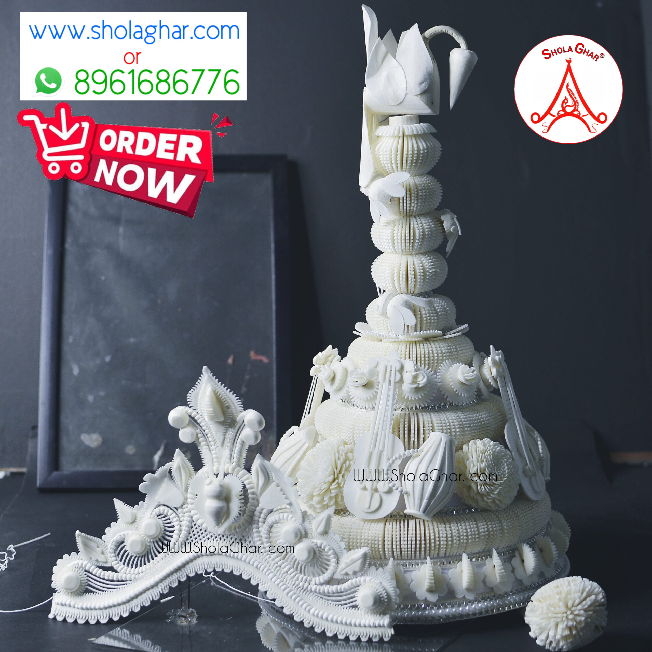 Shola ghar Celebrate the traditions of a Bengali wedding with this beautifully handcrafted Topor-Mukut Set, an essential element of Bengali matrimonial rituals. Rooted in rich cultural heritage, this elegant set is worn by both the bride and groom during the wedding ceremony, divine blessings, and marital bliss.
