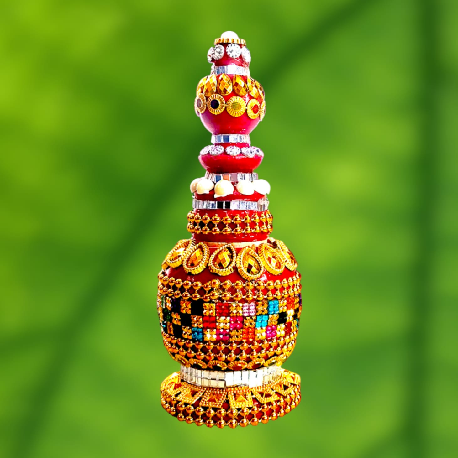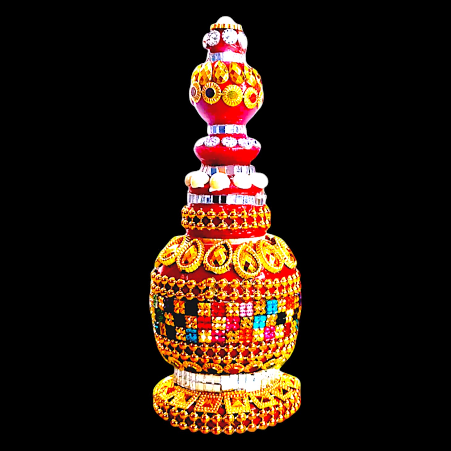 Gachkouto Traditionally used by Bengali brides to carry sindoor, and a 1 rupee silver coin is kept, this item symbolizes purity and tradition. Made from wood and decorated with vibrant colors, it’s a must-have for any Bengali bridal ceremony.